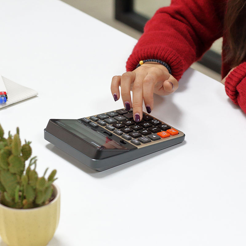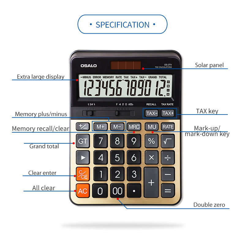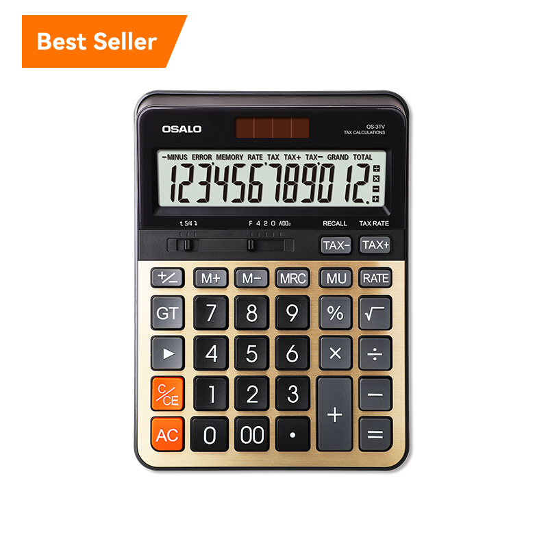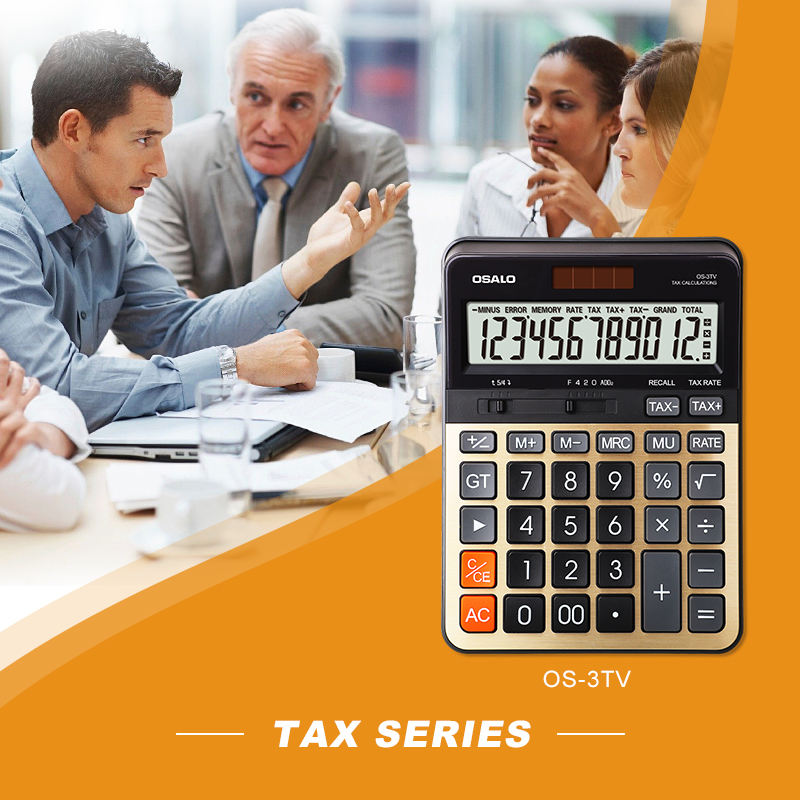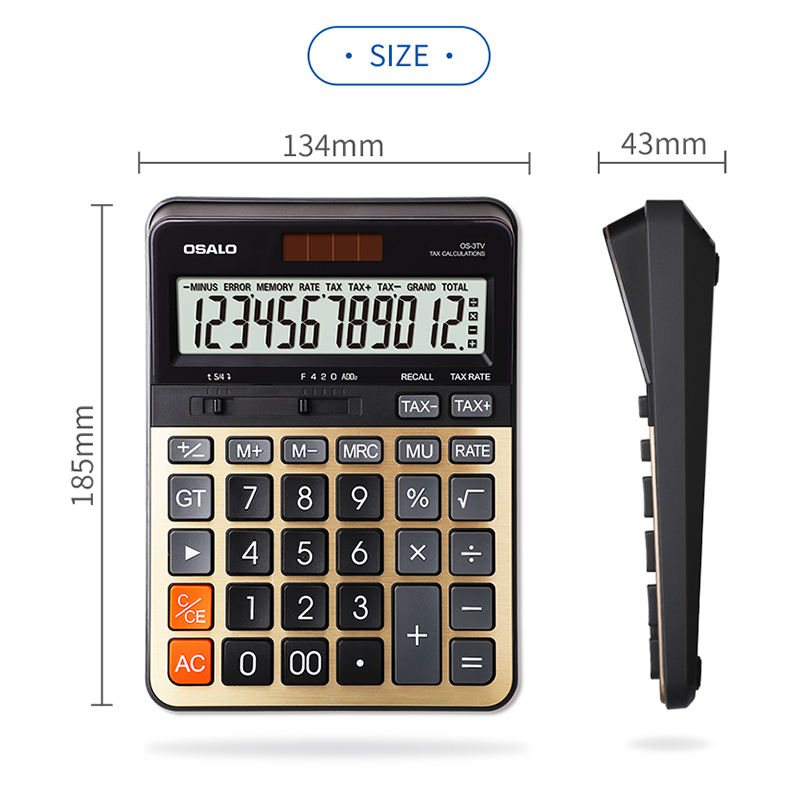 Calculatrice financière fiscale à double alimentation OS-3TV à 12 chiffres, convertisseur de devises avec fonction fiscale, fabriquée en plastique