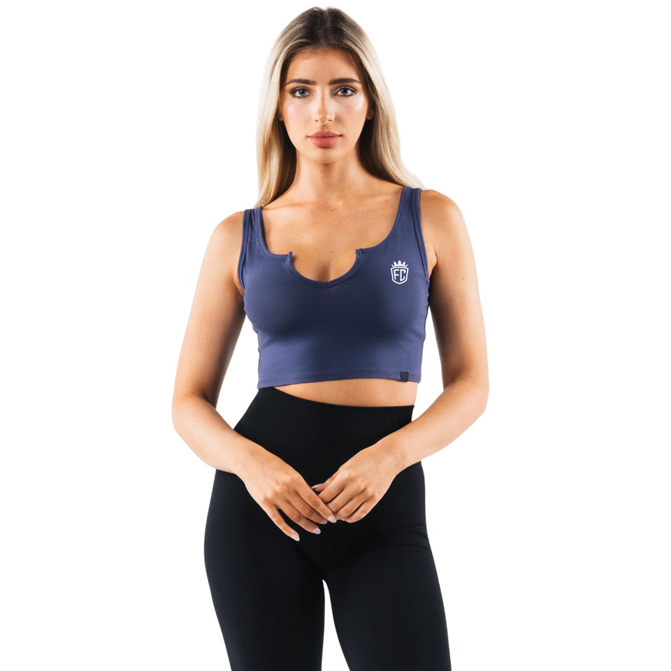 OT Slit Tank Women’s Fitted Cropped Stretch Activewear Gym Workout Tank Top with Sculpting Fit Nocturnal Blue