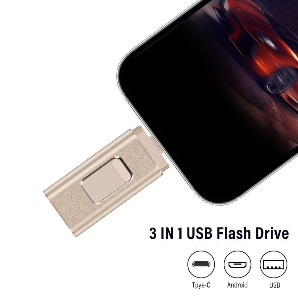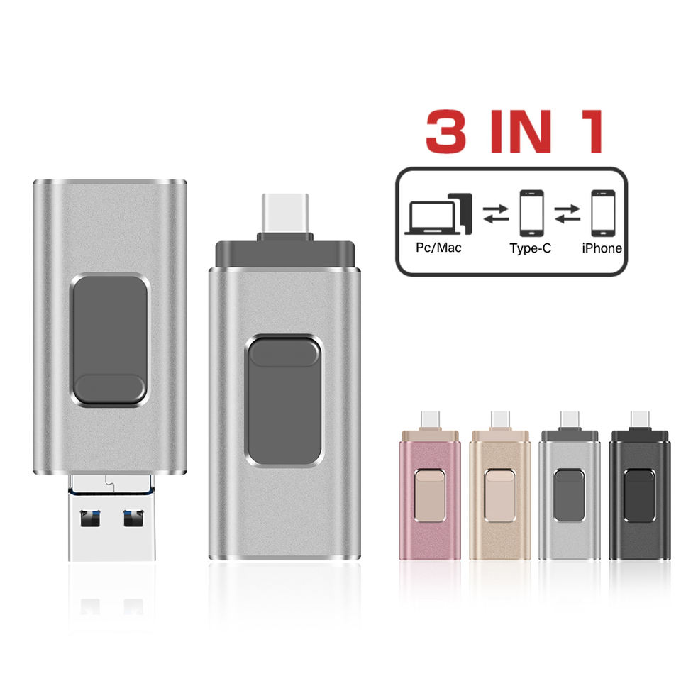 Clé USB OTG pour smartphone Clé USB 3 en 1 Type-C 3.0 Clé USB 16 Go 32 Go 64 Go Mémoire USB