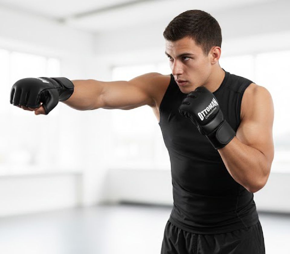 Gants de boxe MMA personnalisés avec logo imprimé OTTOMAN CARPORATION, poignées imperméables, design léger, fermeture en cuir PU