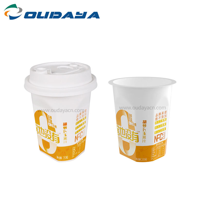 Contenants à café et thé OUDAYA à paroi simple IML 350 ml 22,8 g en PP de qualité alimentaire, diamètre 79 mm, inviolables, sans transfert d'odeurs, personnalisables