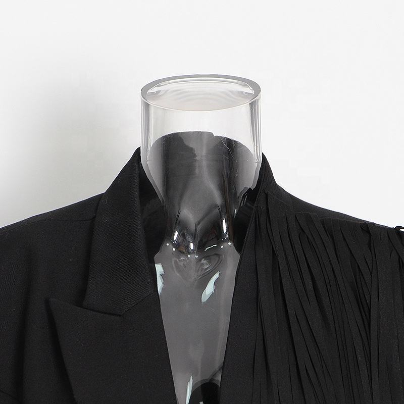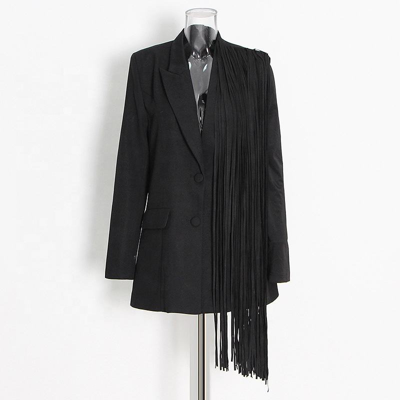 OUDINA nouveau Design industrie lourde à manches longues gland asymétrique automne col en v mince mi-long costume Blazer femme 2023