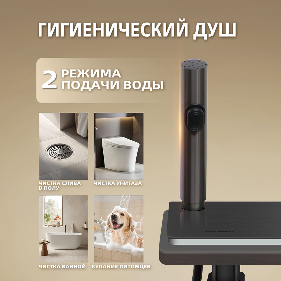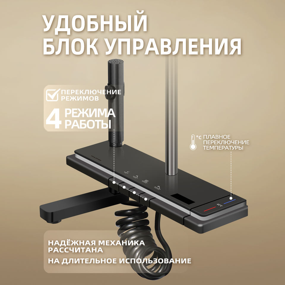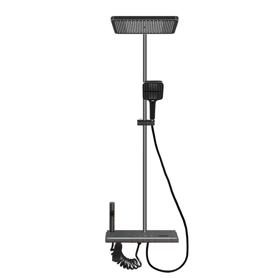 OULEMEI Ensemble complet de douche pour salle de bain en acier inoxydable gris poli avec éclairage d'ambiance à boutons piano, affichage numérique et pommeau de douche pluie