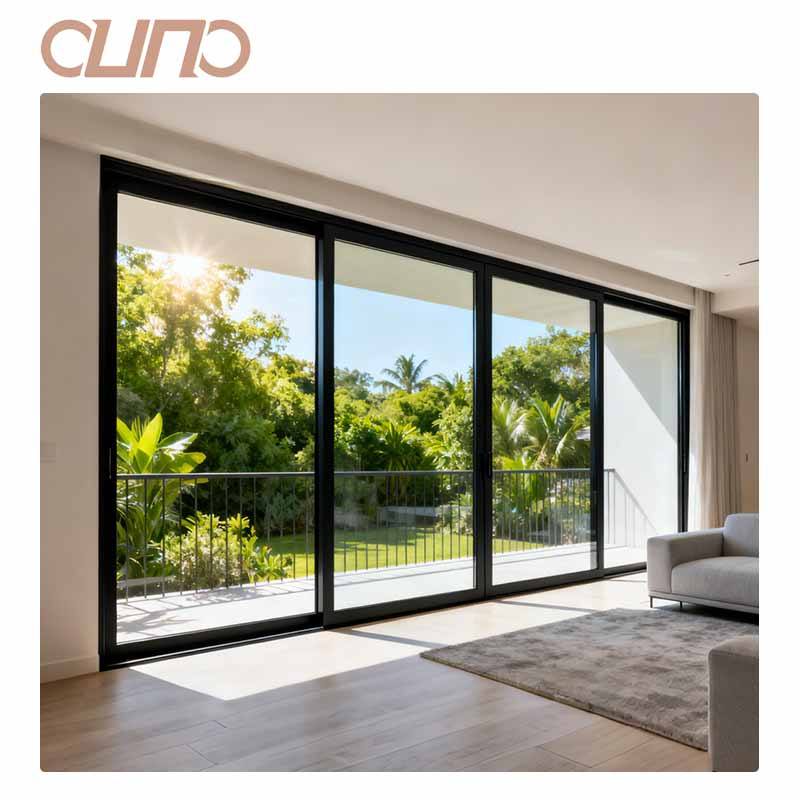 Porte coulissante en verre à cadre étroit OUNA NFRC pour intérieur, balcon, vue panoramique, bureau, grande porte coulissante en aluminium à 4 panneaux