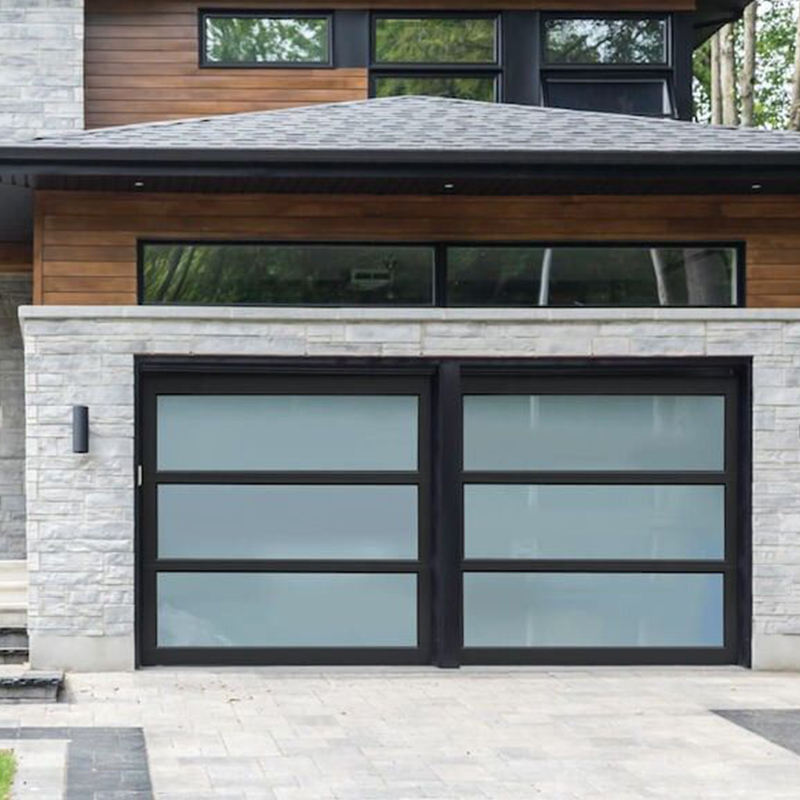 Porte de garage en verre à cadre fin OUNA Maximise la lumière et la vue Panneaux trempés automatiques pour les maisons architecturales modernes