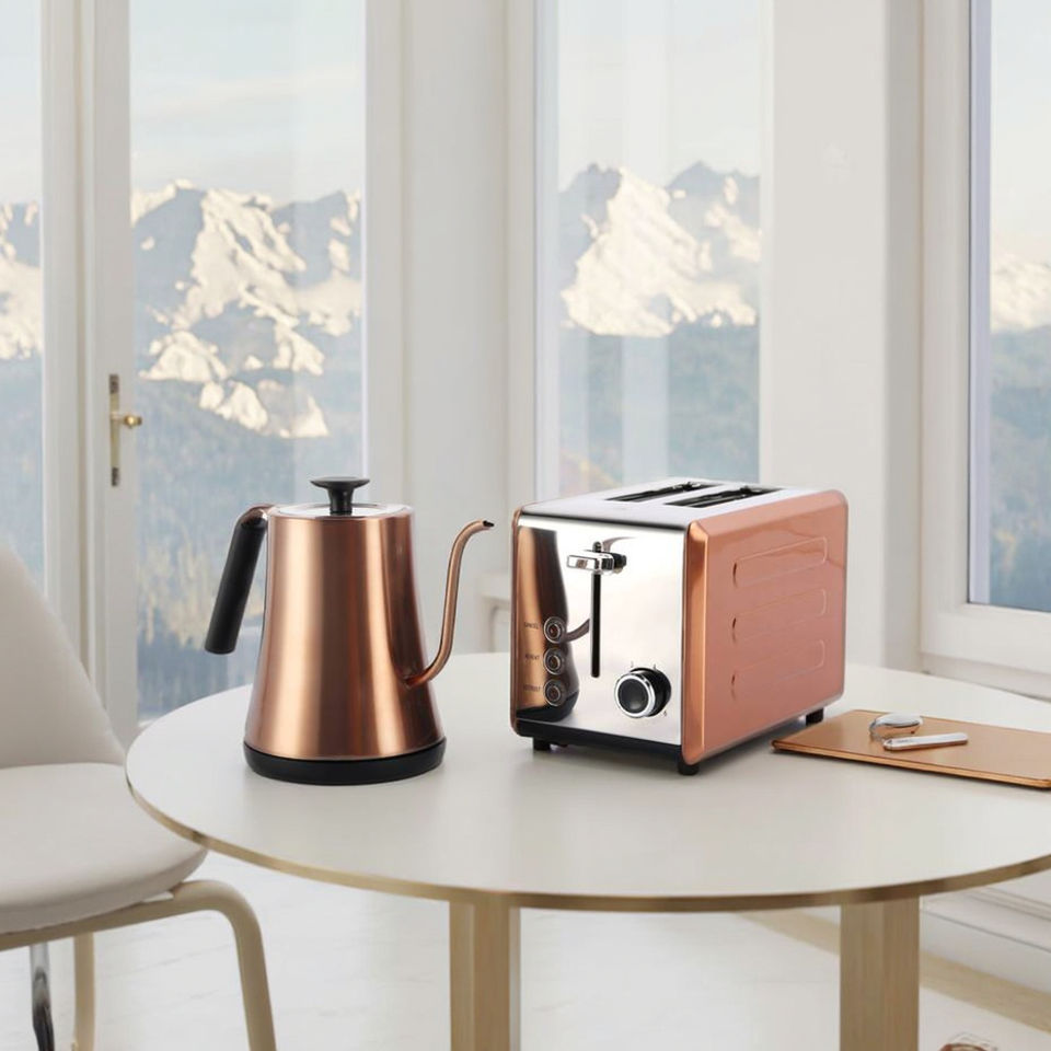 Ensemble de petit-déjeuner OUSHENG, grille-pain électrique en acier inoxydable à 2 tranches, minuterie mécanique, triple fonction, classe énergétique efficace, classe Goose