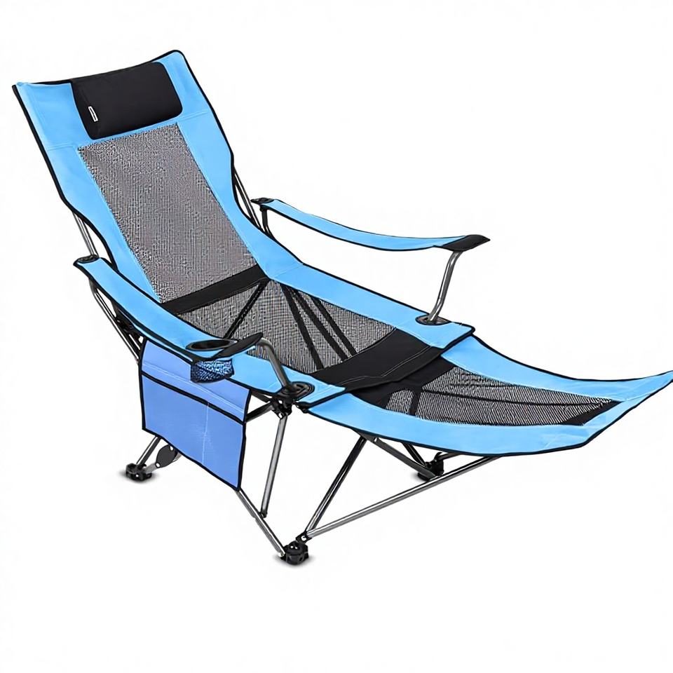 Chaise pliante portable en maille pour le camping SUNTIME, avec repose-pieds amovible - Mobilier d'extérieur