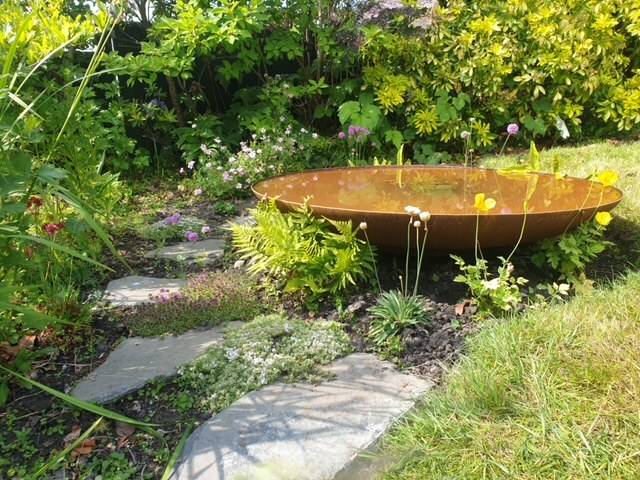 Bassin d'eau rustique d'extérieur en acier courbé avec fontaine.Nom du produit