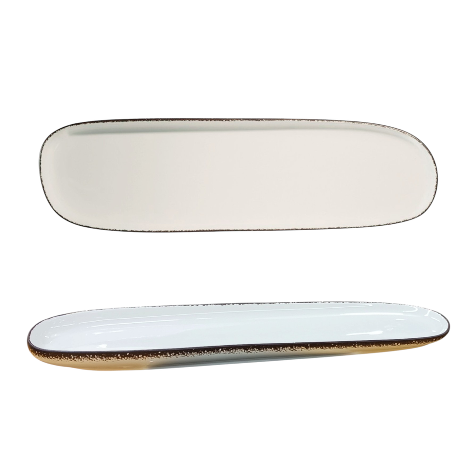 Plateau ovale en porcelaine, motif vague, 41,5x11,5 cm, blanc