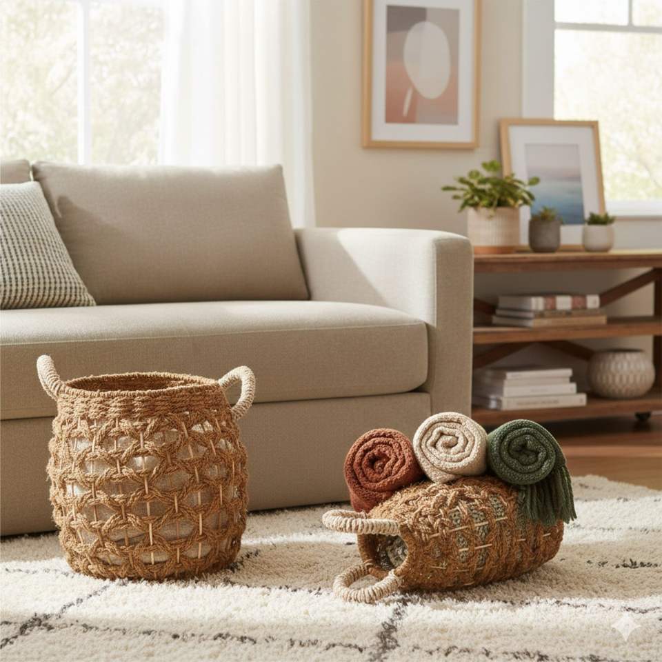 OVAL ROUND BASKET SET OF 2 BANANA TREE BARK FIBER HANDICRAFT