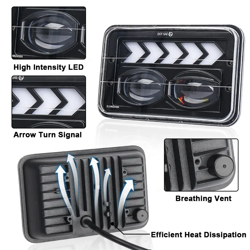 4x6 led phares, Camions Carré Phare, Phare 12v ledNo.OE