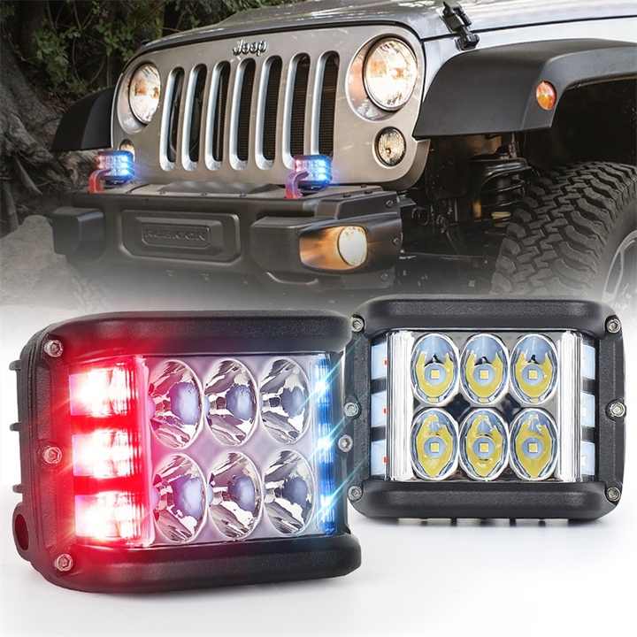 OVOVS Feux LED tout-terrain de 4 pouces avec fonction double côté solide/stroboscopique, feux LED latéraux pour camion à charrue, VTT, UTV, SUV 4x4