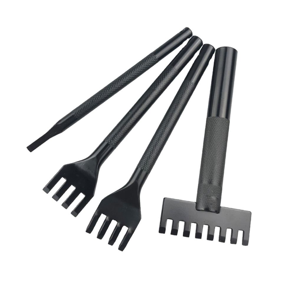 OWDEN Outils de couture faits à la main pour le bricolage 4PCS Poinçons pour cuir Ciseau Piquer Fer Laçage Couture Travail pour l'artisanat du cuir OEM