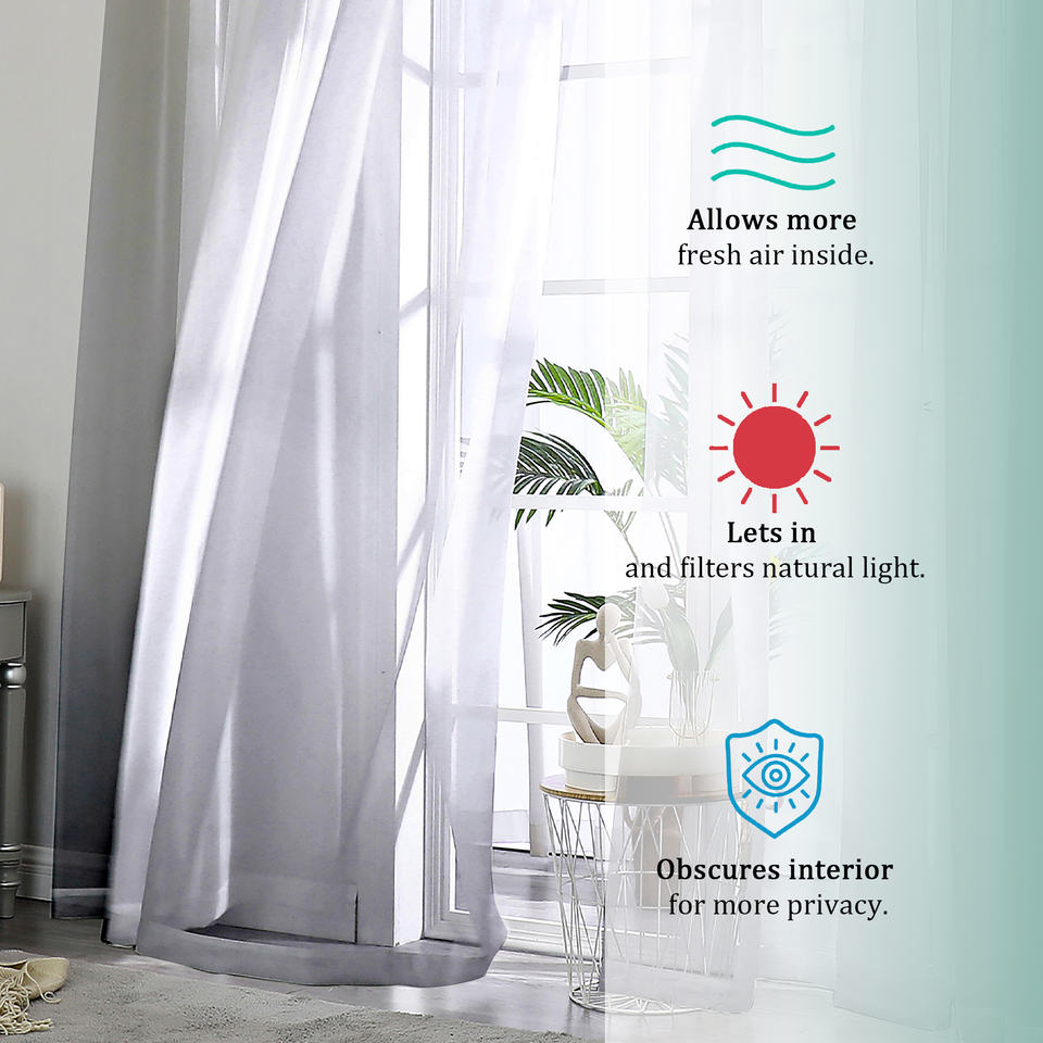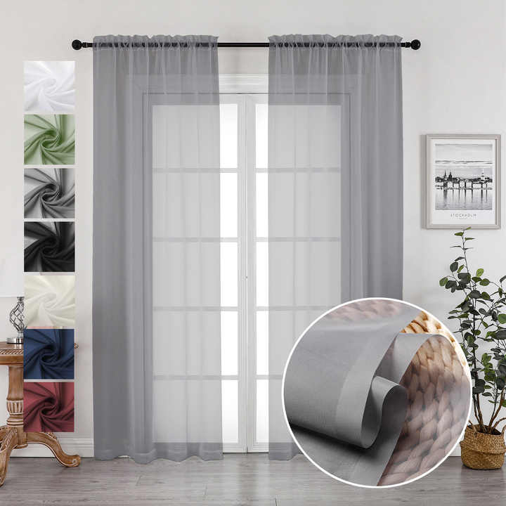 OWENIE Rideau de fenêtre en tissu transparent uni à passe-tringle, pour salon