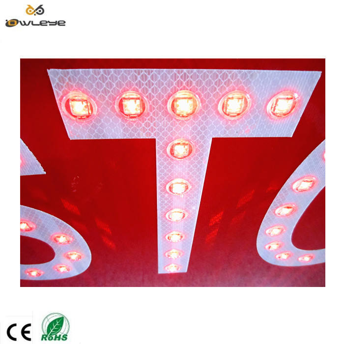 Panneau STOP solaire OWLEYE octogonal ultra-fin en aluminium de 8 mm, LED 240H, clignotant, portée de 1000 m, IP66, zone scolaire, intersection, sécurité routière