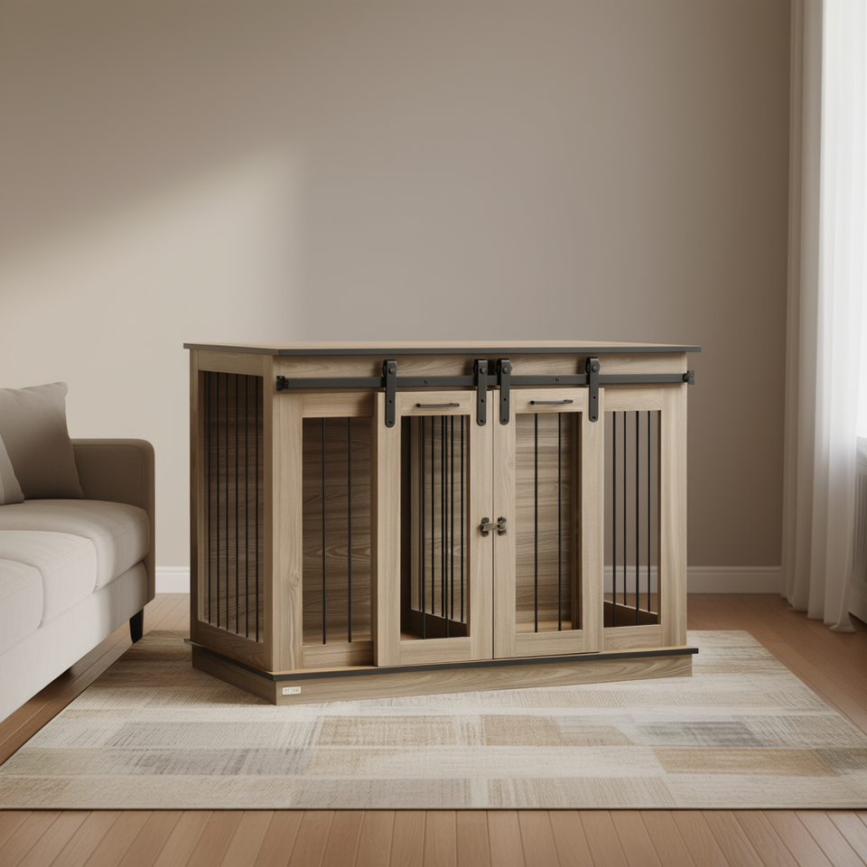 Cage pour chien en chêne de 47,5 pouces avec panneau de séparation, mobilier d'intérieur moderne pour grands chiens