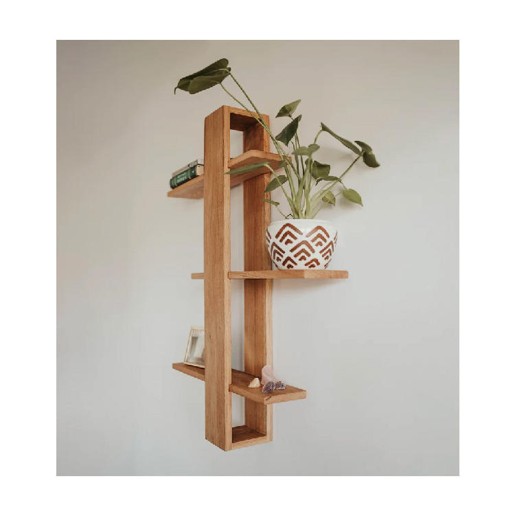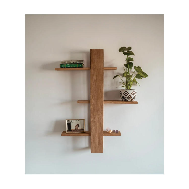 Décoration murale flottante en chêne étagères à livres suspendues faites à la main à plusieurs niveaux plantes suspendues en bois étagères d'exposition