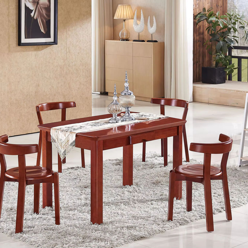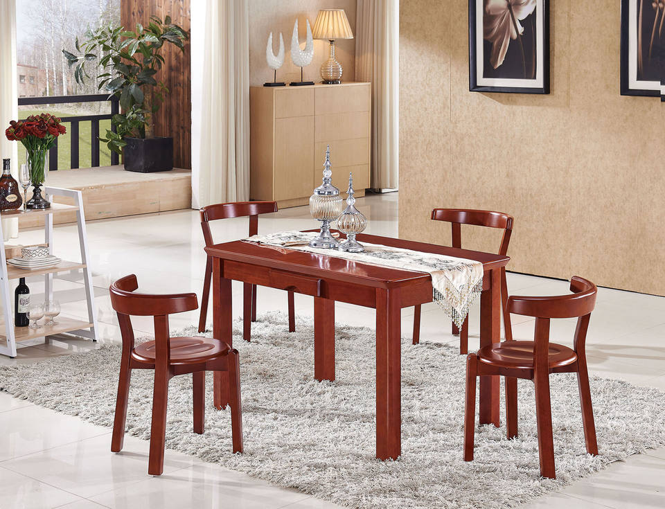 Oak T289S+C380 Dining Table&Chair Rectangular Desktop with Drawer Espresso Finish Dinette for Home Office Kitchen Living Room