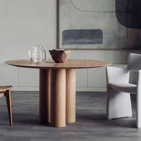 Table à manger ronde en bois de chêne, construction solide, design élégant, finition durable et ajout parfait au style de votre intérieur