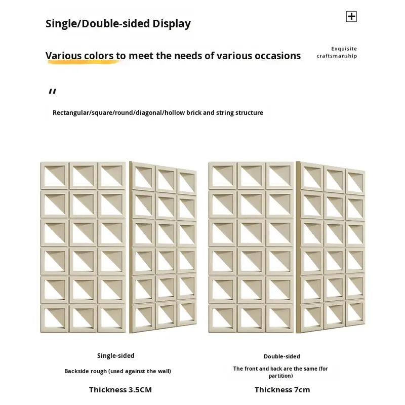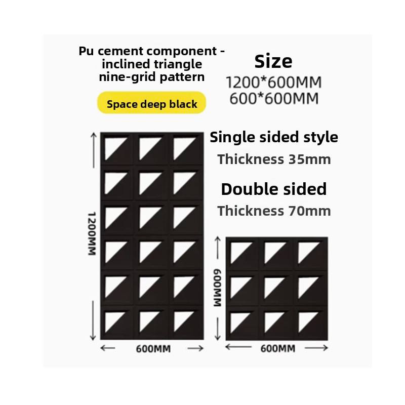 Brique en PU à grand format en forme de triangle oblique, composant de ciment, double face, légère, creuse, pour mur de fond