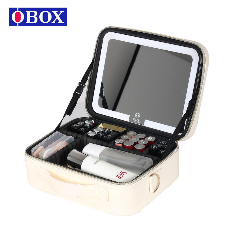 Trousse de maquillage Obox grande capacité avec miroir, fermeture éclair, respirante, imperméable et ultralégère pour le rangement à domicile