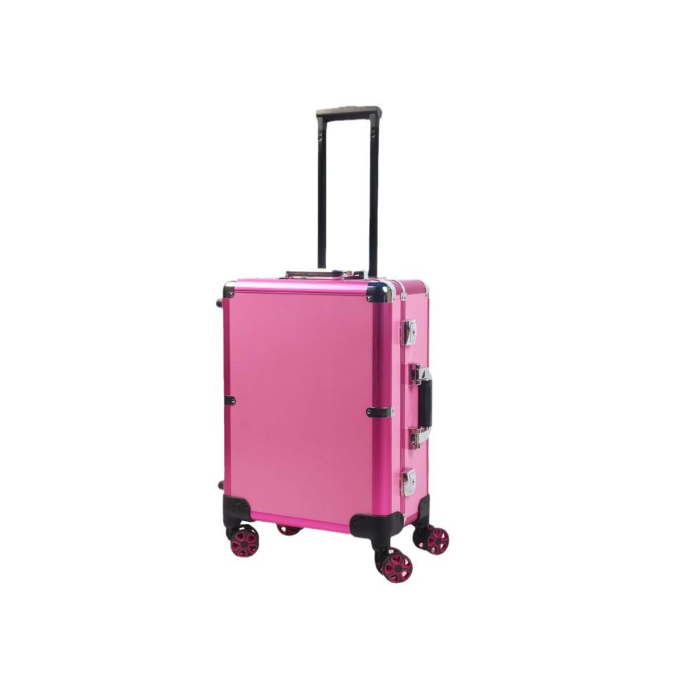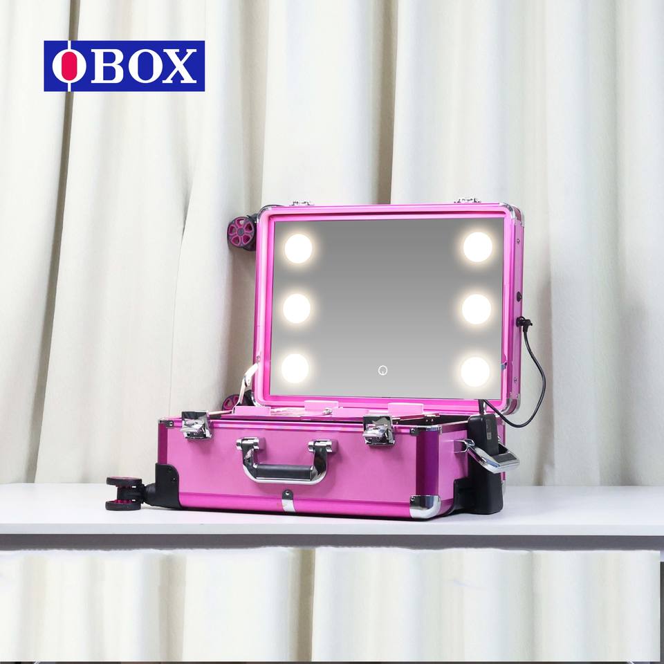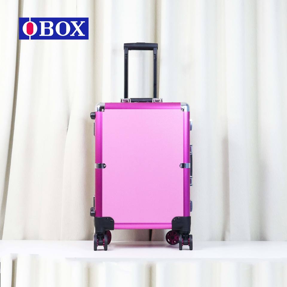 Valise à maquillage Obox grande capacité, portable, avec roulettes pivotantes, couleur rose rouge unie, fermeture à cadenas, boîte de rangement cosmétique