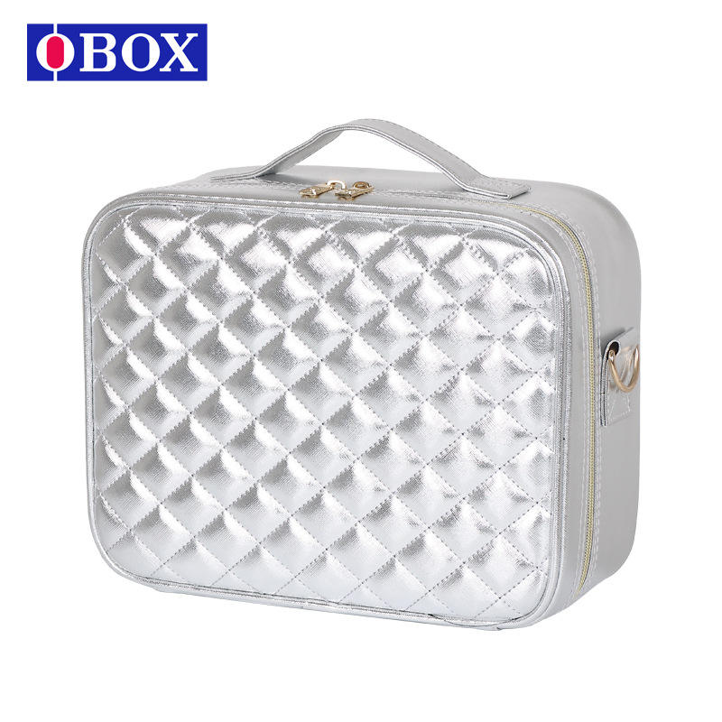 Trousse de Maquillage Obox avec Miroir Lumineux, Motif à Carreaux, Capacité Moyenne, Fermeture Éclair, Pour Rangement Domestique, Printemps 2025