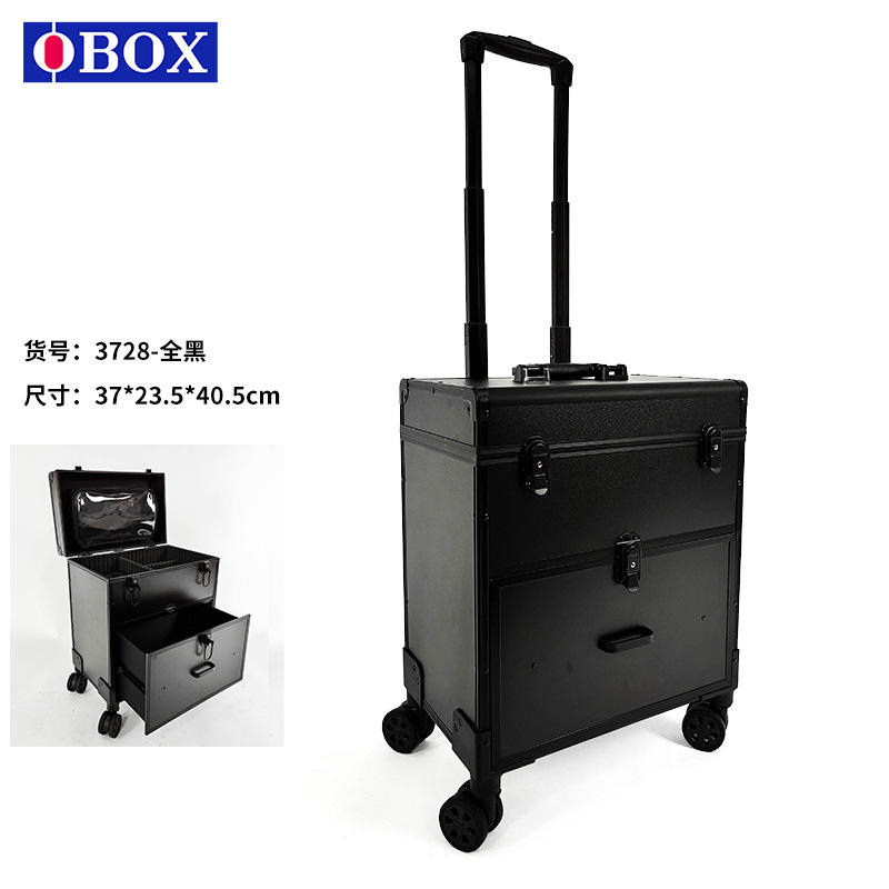 Valise de maquillage multifonctionnelle Obox avec tiroir, en alliage d'aluminium, pour rangement à domicile, couleur noire unie