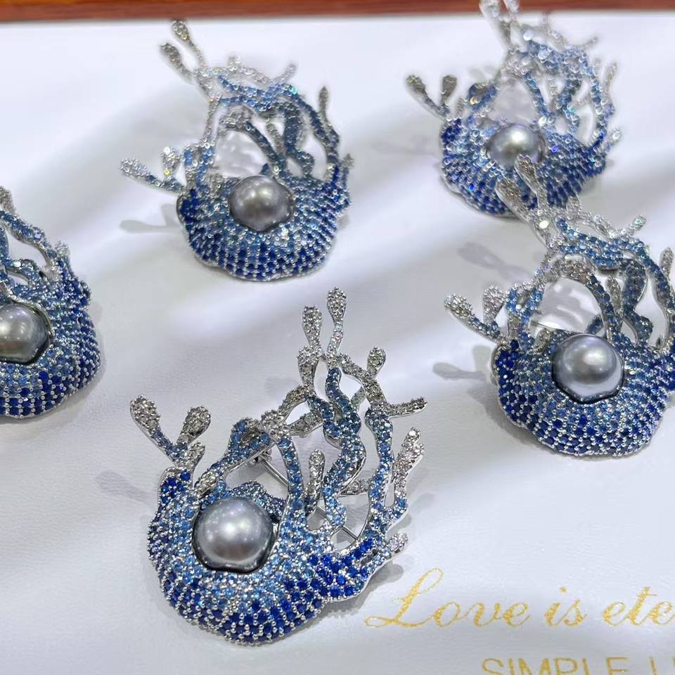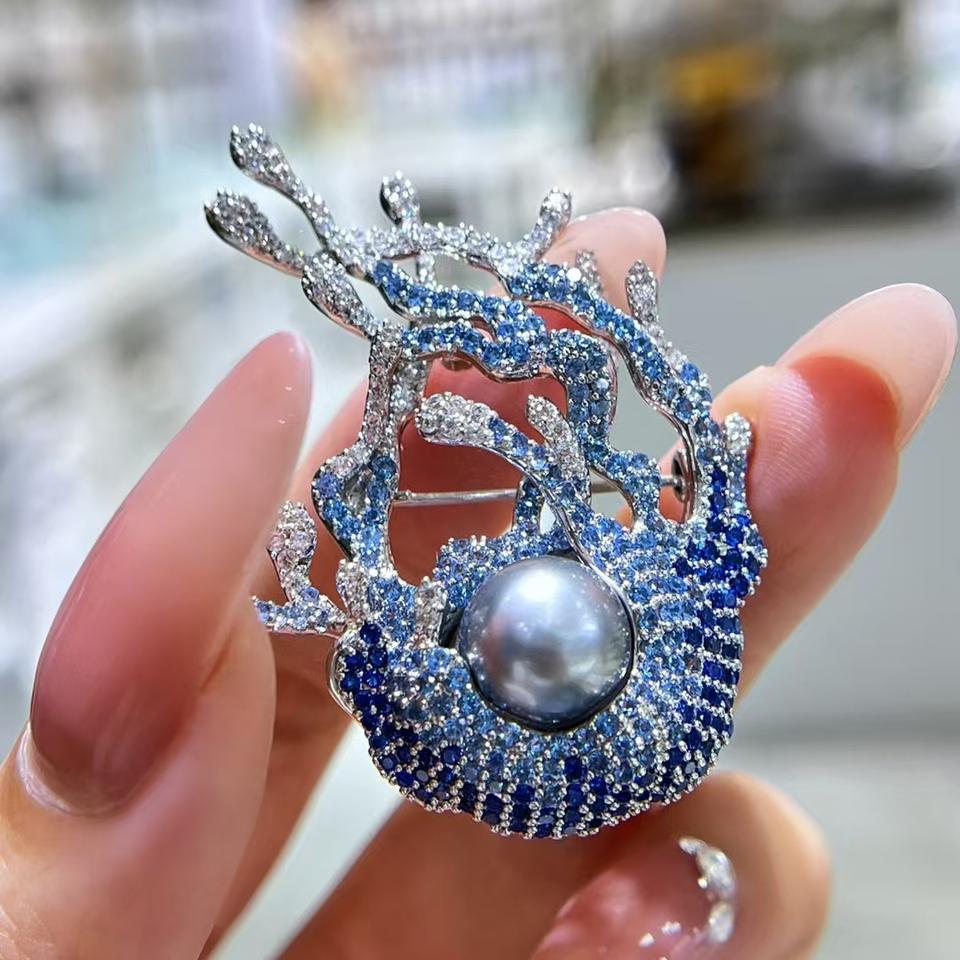 Ocean Coral High-End Women's Brooch Elegant Suit Pin with Natural Pearl and Zircon Exquisite European American Fashion