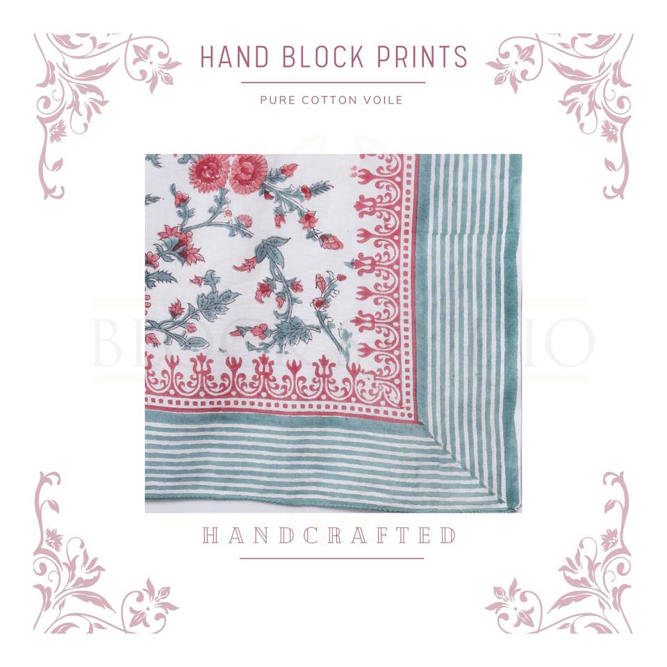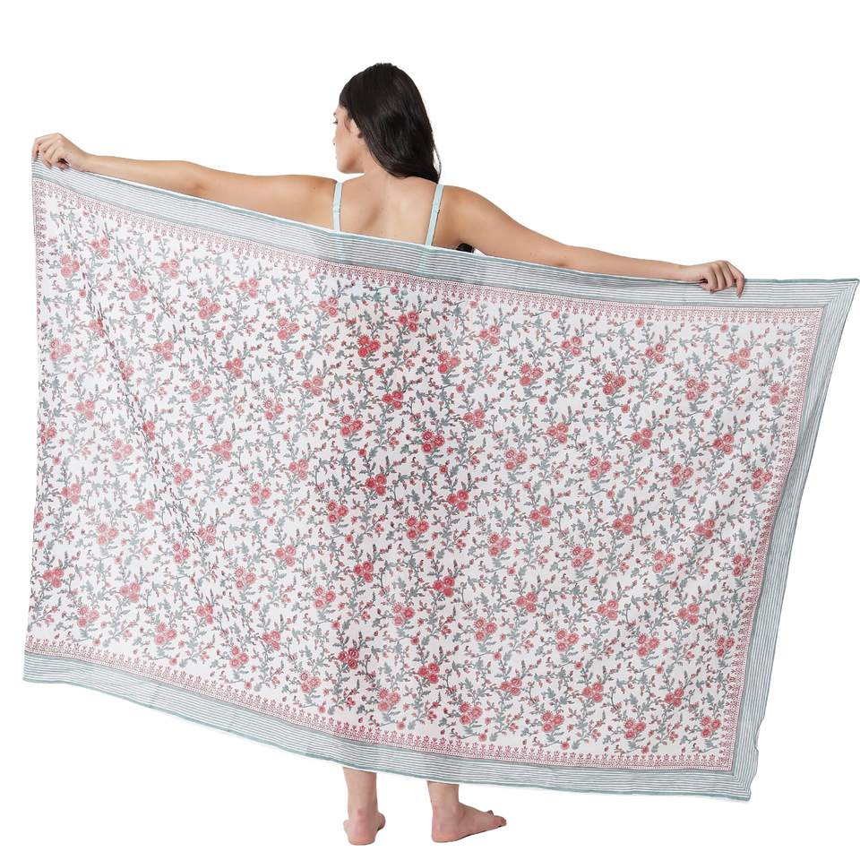 Sarong en coton imprimé à la main Ocean Green et Rose Shadow pour femmes, léger, idéal pour la plage et les vacances d'été