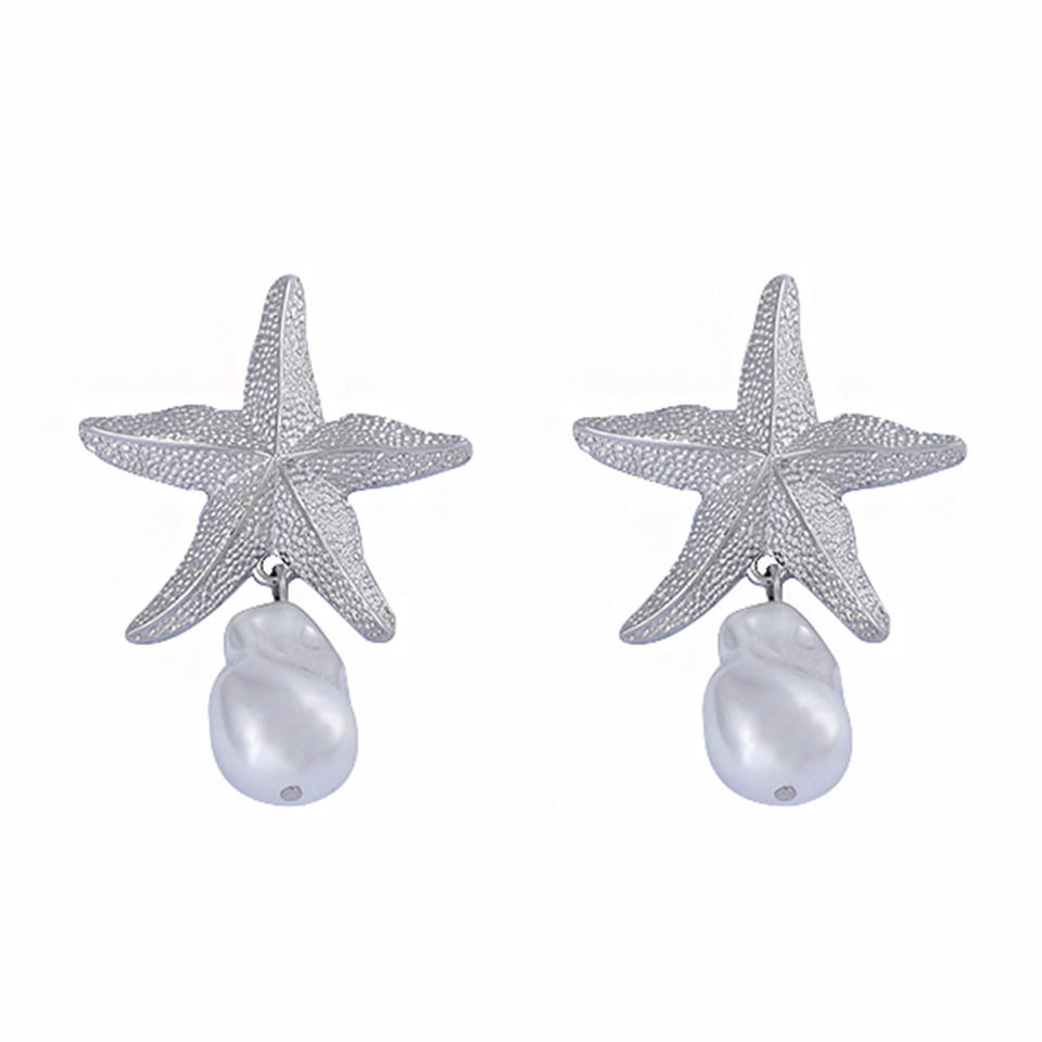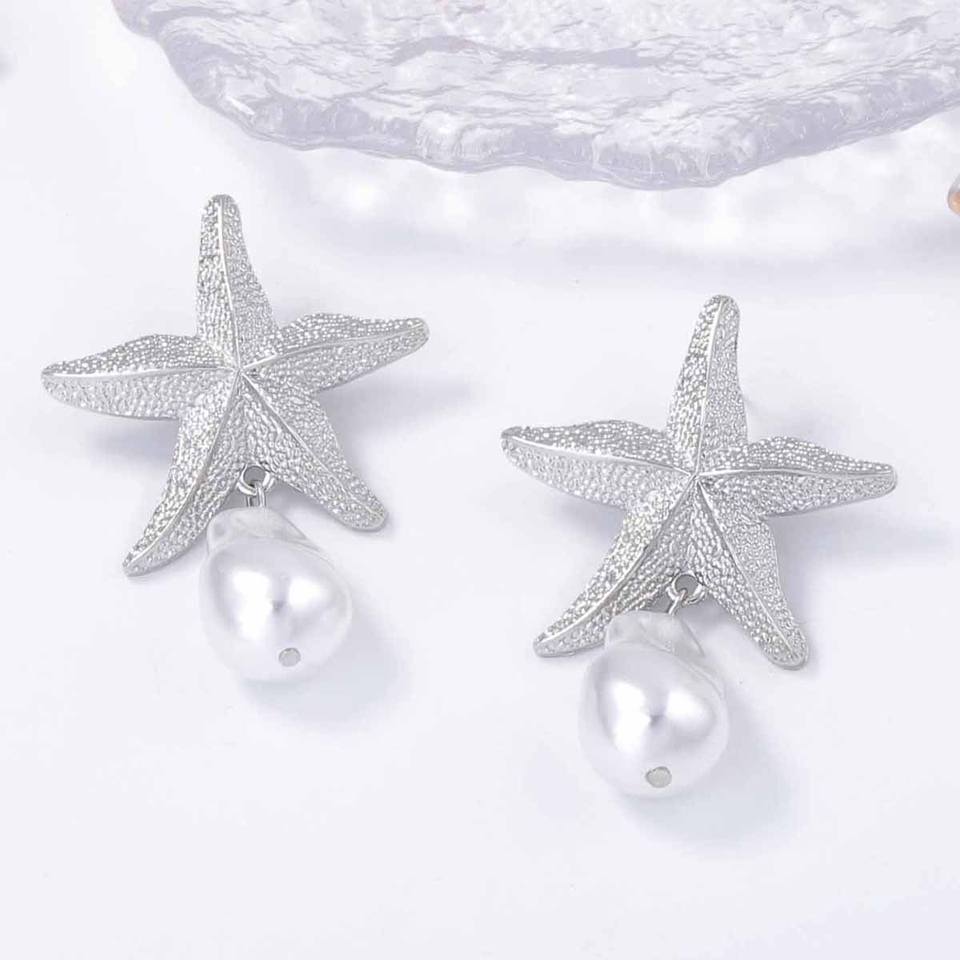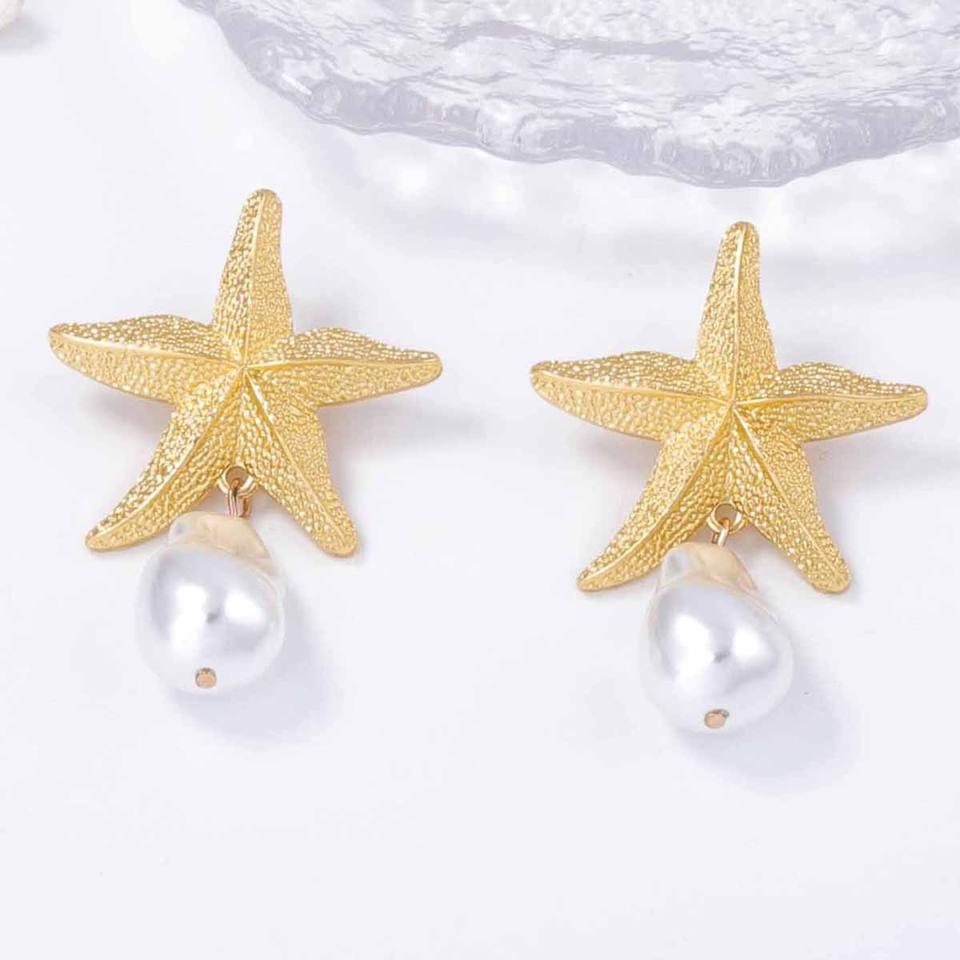Ocean Leisure Holiday Style Fashion Alloy Starfish Pearl Pendant Earrings for Women