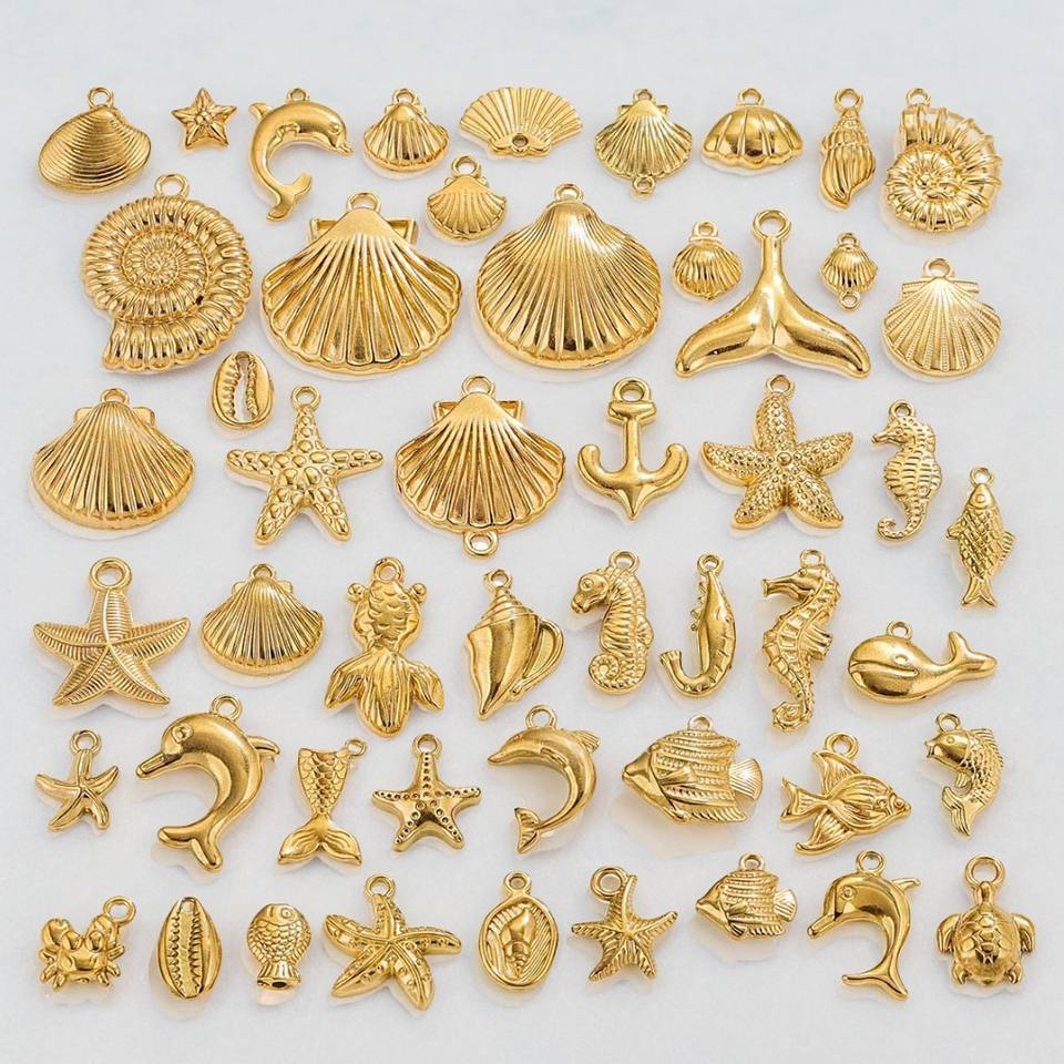 Pendentif Charme Coquillage Étoile Sirène Océan | Acier Inoxydable Plaqué Or PVD 18K pour Fabrication de Bijoux DIY Bracelets Colliers