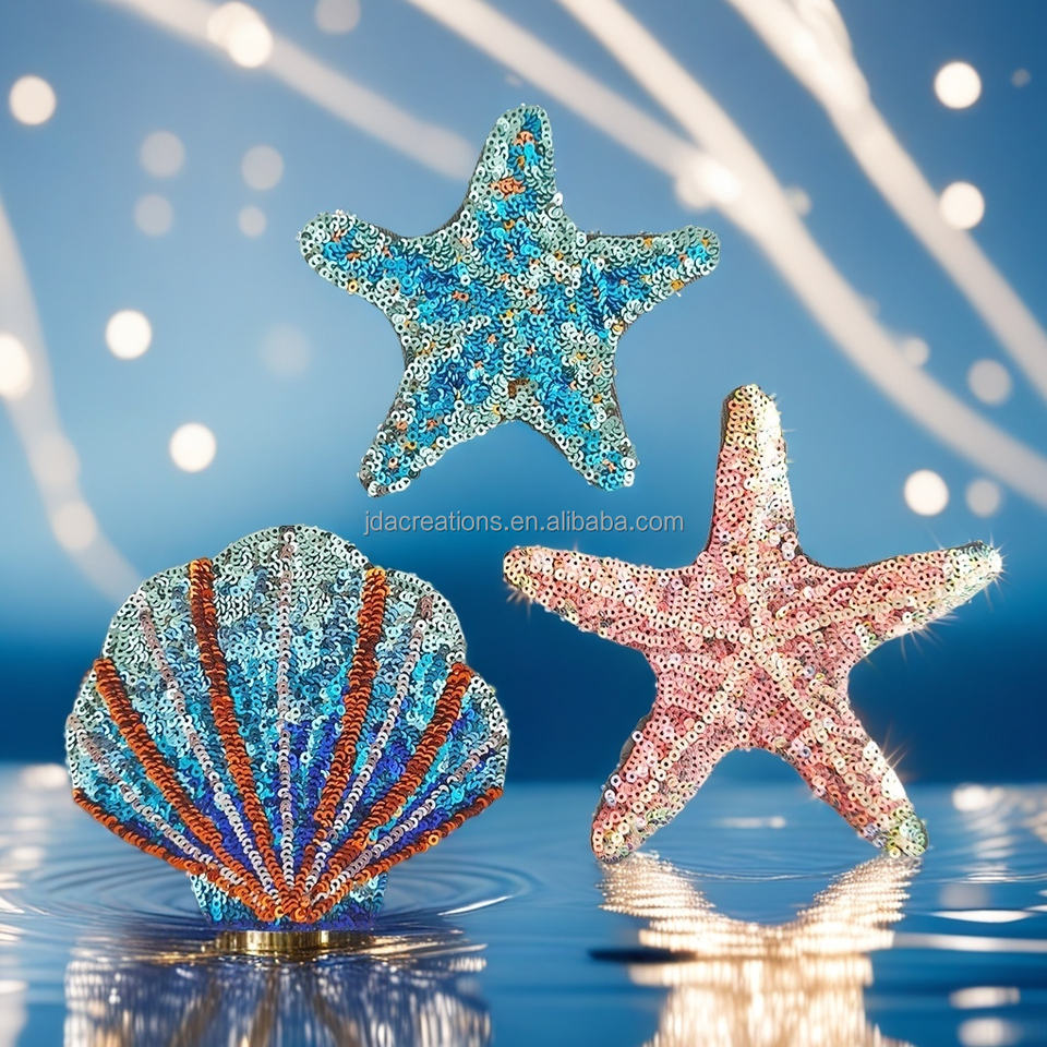 Patch brodé de style océan avec étoile de mer et coquillages pour accessoires