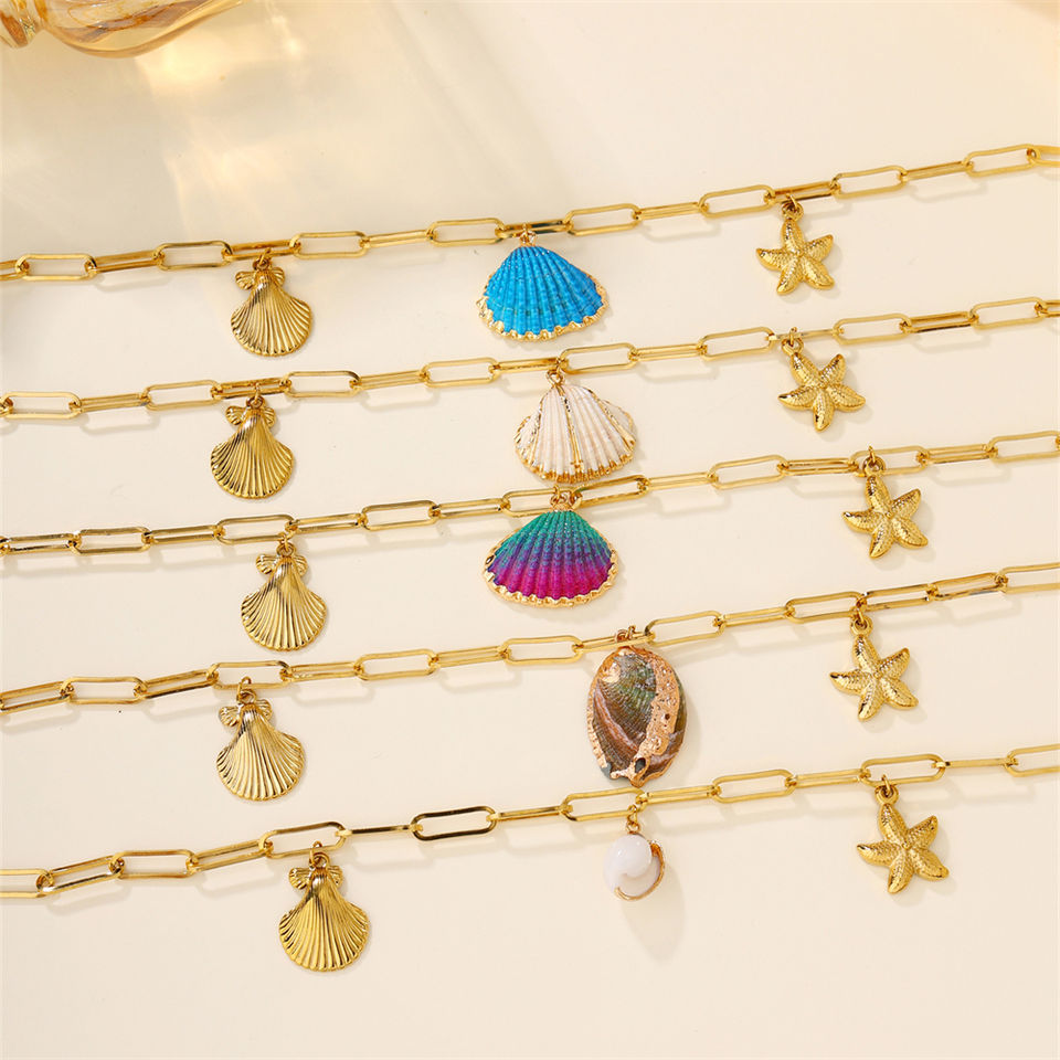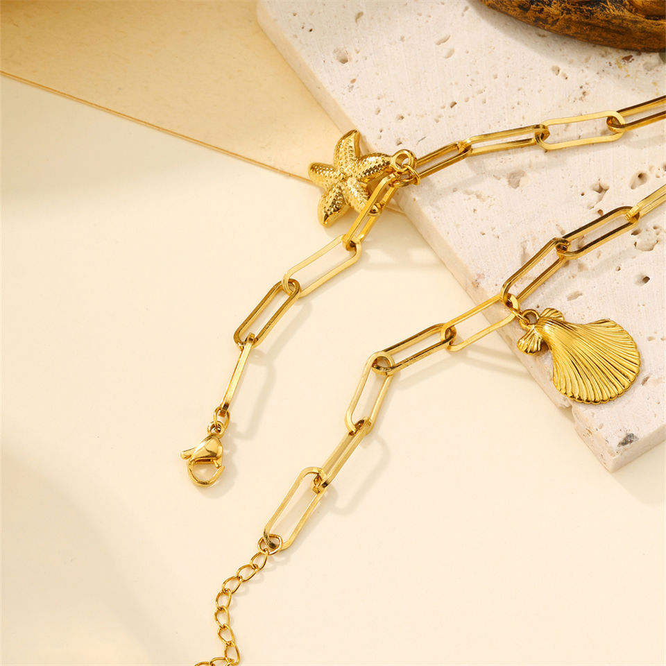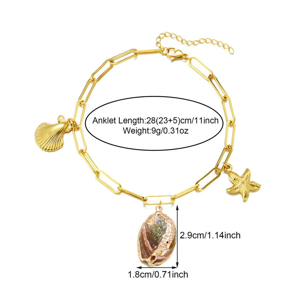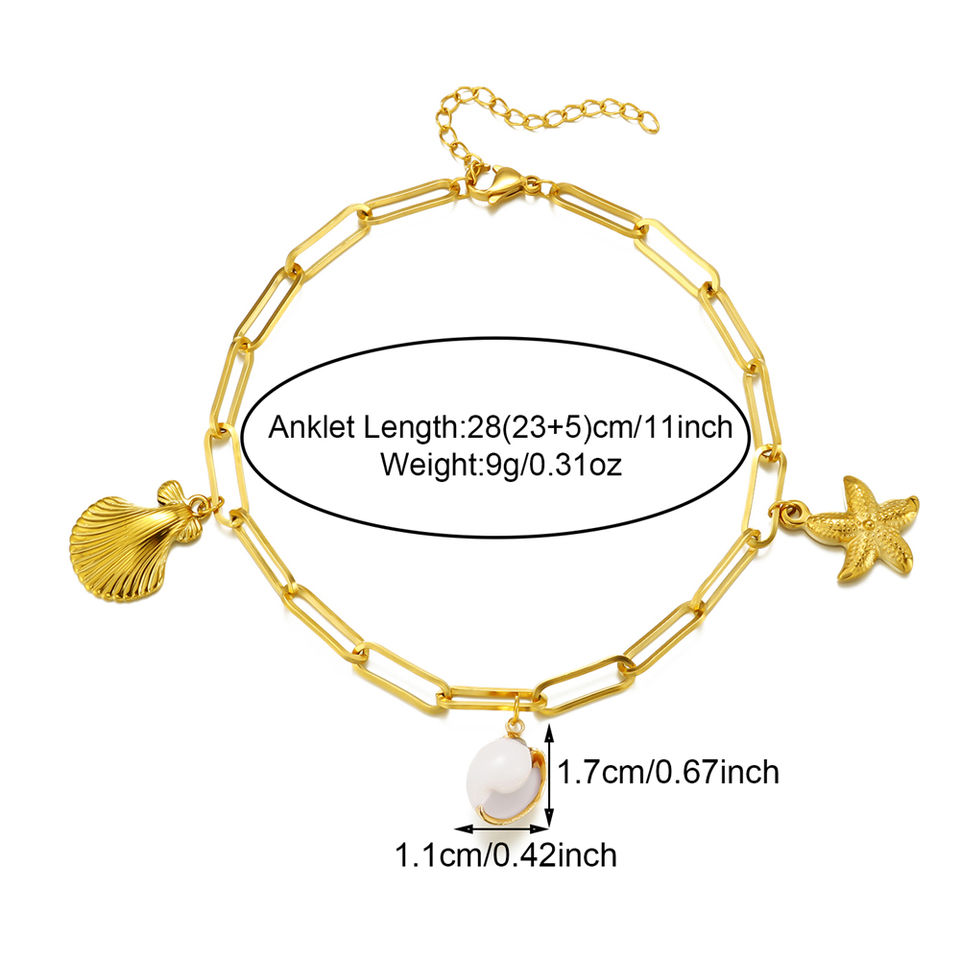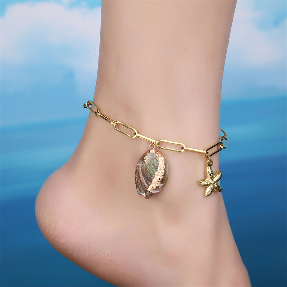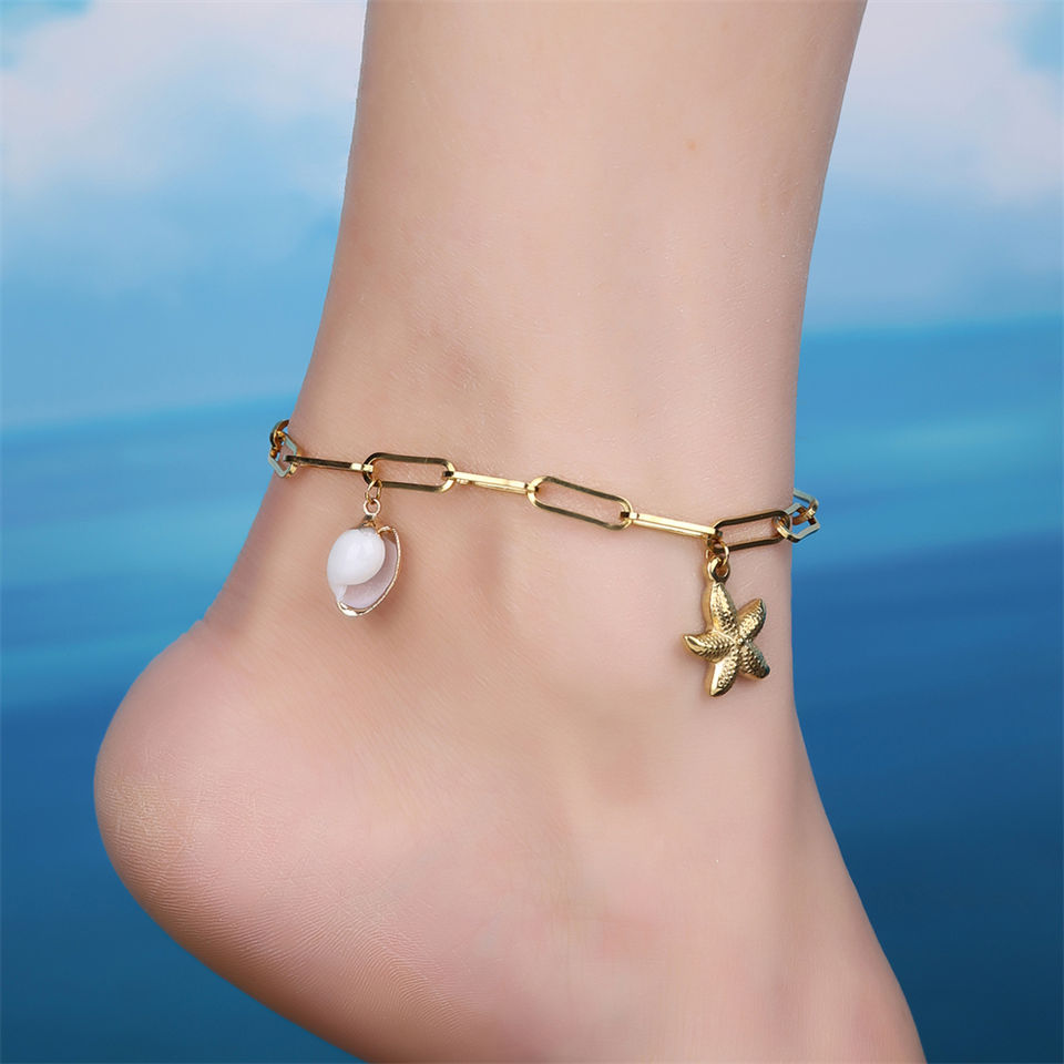 Chaîne de cheville à trombone sans ternissement sur le thème de l'océan chaîne de cheville à breloque en étoile de mer en acier inoxydable plaqué or pour femme
