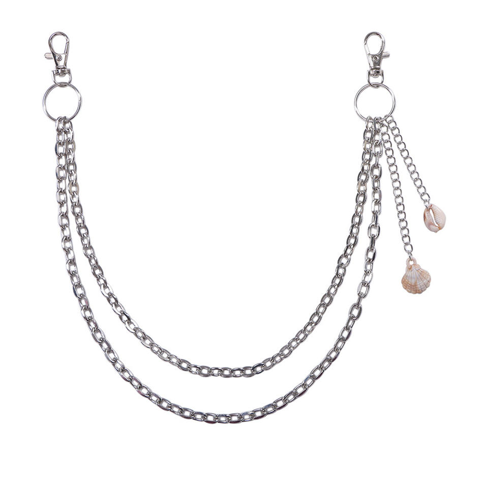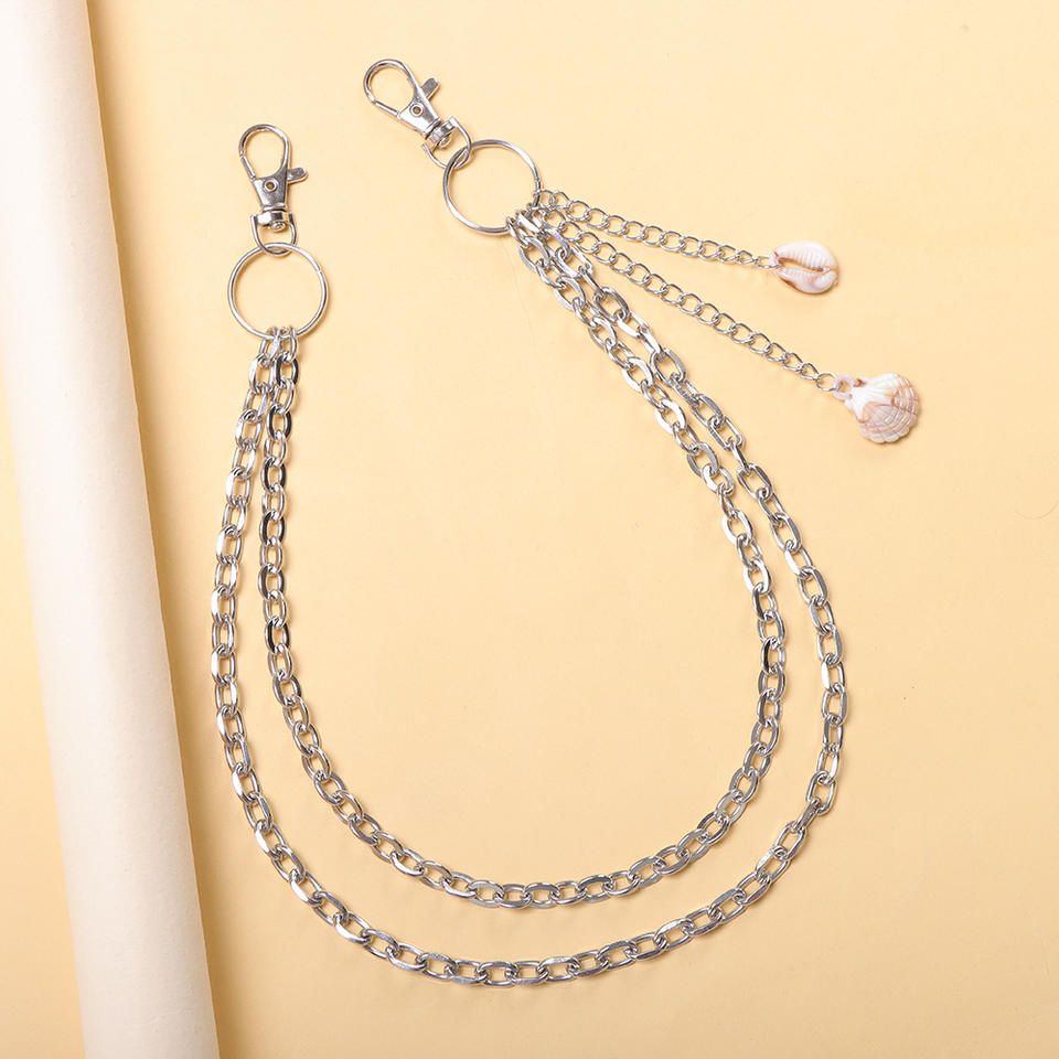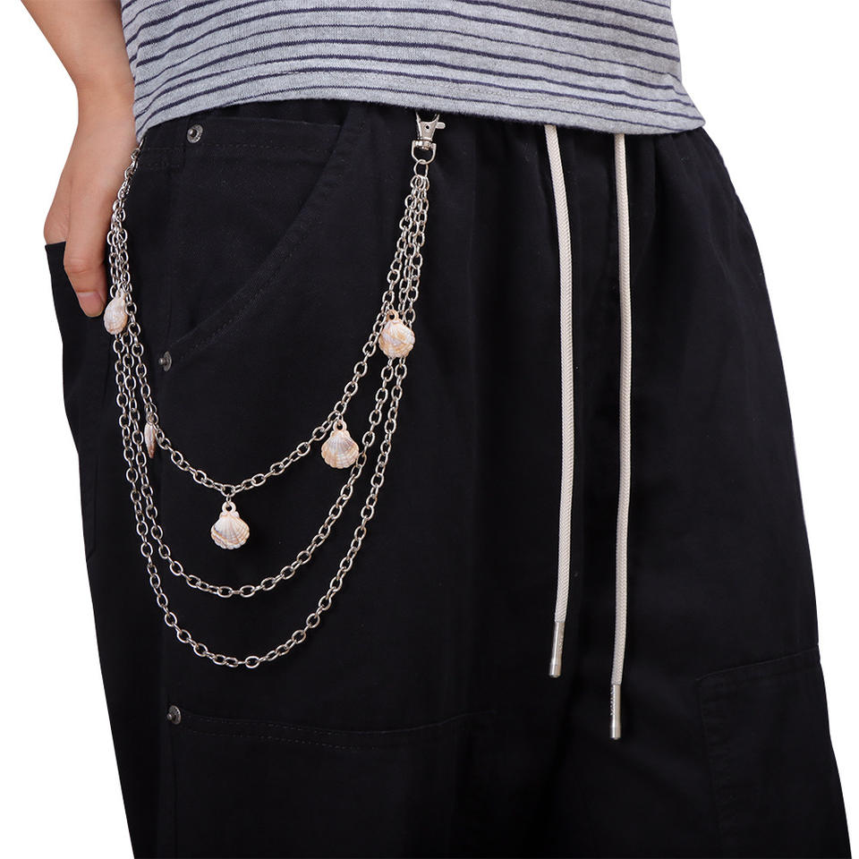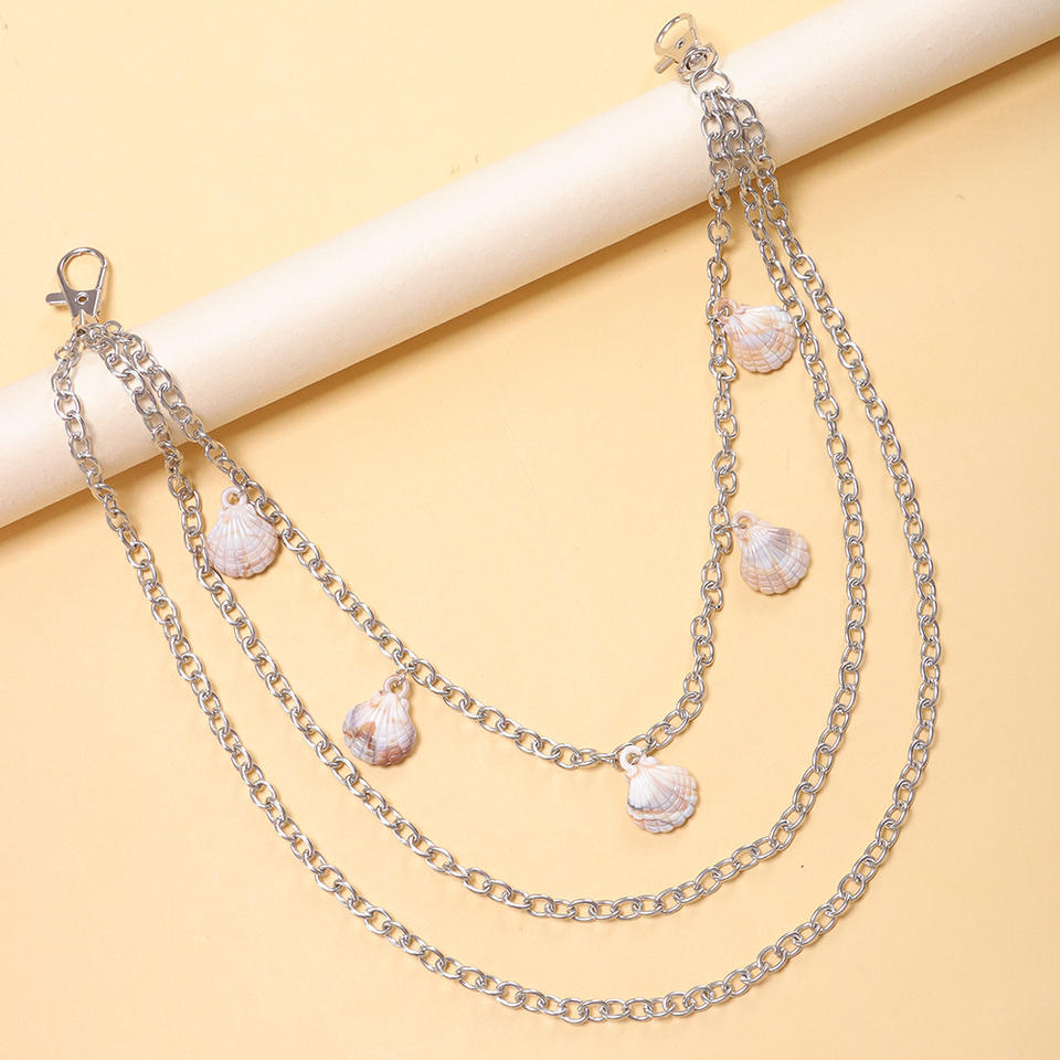 Chaîne de pantalon multicouche en métal avec pendentif coquillage thème océan, style punk décontracté unisexe, chaîne de taille en alliage de zinc