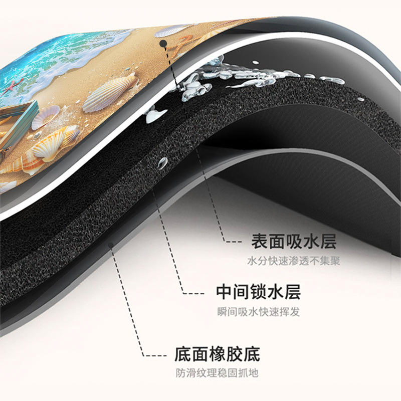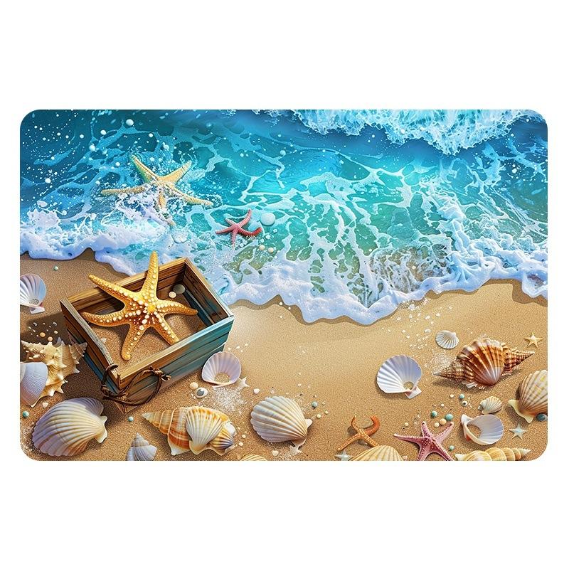 Tapis de bain Ocean Wave en fibre de polyester, rectangulaire, absorbant, séchage rapide, style nordique, tapis de salle de bain Seaside Diary