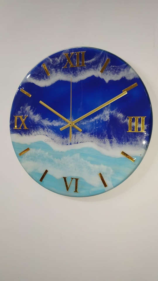 Horloge murale en résine époxy Ocean Wave Décor bleu et blanc unique pour décoration murale de style religieux pour la maison côtière