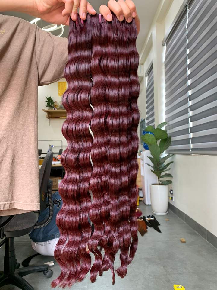 Océan ondulé cheveux brésiliens sans enchevêtrement perte couleur bordeaux humide ondulé cheveux humains vietnamiens tissage matière première abordable