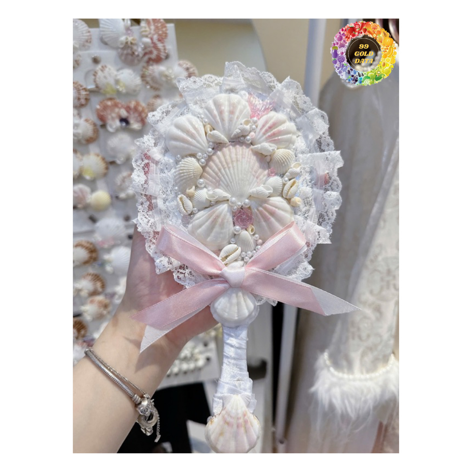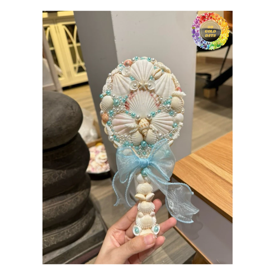 Ocean Whispers-Miroir à main en coquillage fait à la main, beau miroir de poche en coquillages et perles pour les amoureux de Mermaidcore et de la plage