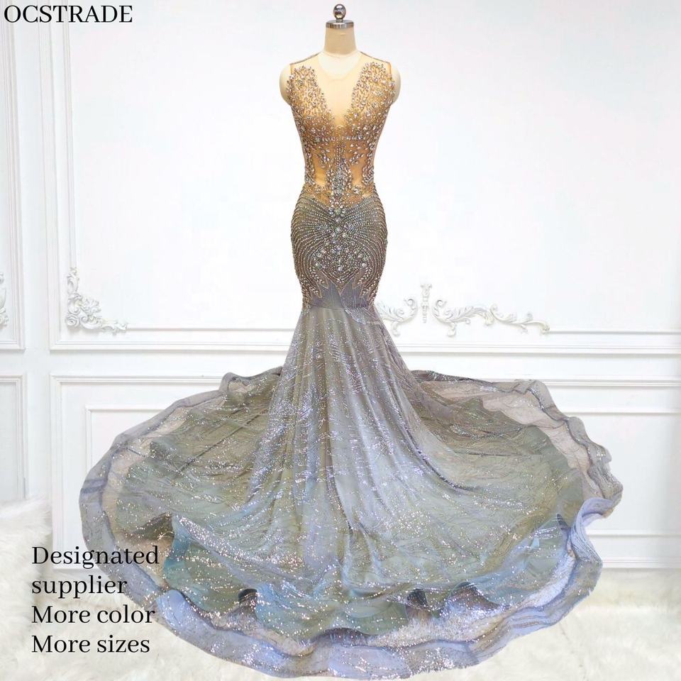 Ocstrade Women'S Clothing 2024 Country Wedding Women Long Prom Dresses Shiny Silver Rhinestone Evening Dresses Sweep Train