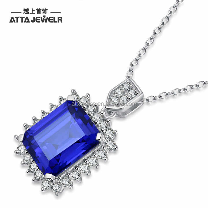 8 carat en forme d'octogone de émeraude pour femme, bijoux de couleur saphir bleu et argent 925, pendentif en Halo de 10x12mm