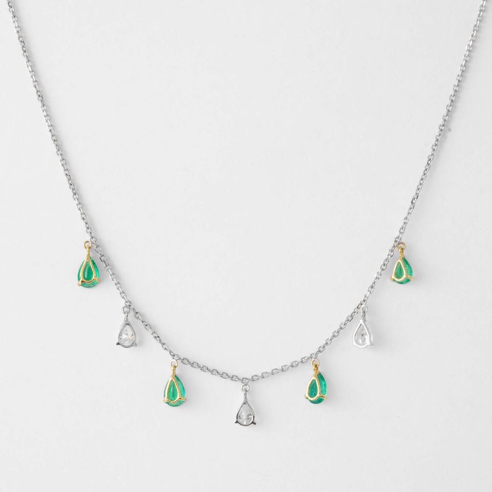 Collier avec pendentif en émeraude et diamants de laboratoire