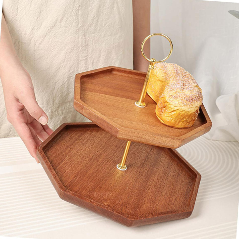 Plateau octogonal en bois à 2 niveaux Double couche gâteau bonbons collations affichage plateau à plusieurs niveaux Dessert affichage et stockage plateau en bois à deux niveaux