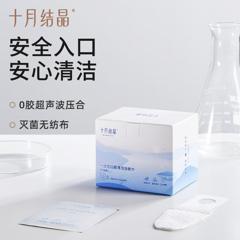 Lingettes buccales pour bébé October Crystal, 32 lingettes, type sec, sûres pour les nourrissons