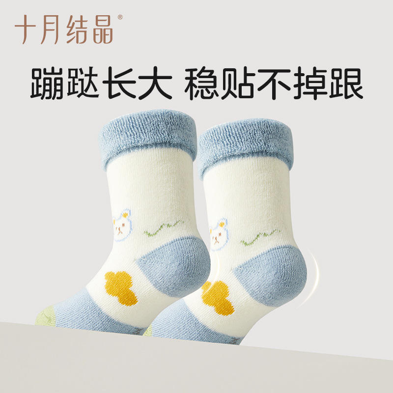 Chaussettes pour bébé en coton éponge doublées de polaire épaissies, lot de 3 paires, chaudes pour l'automne et l'hiver, collection Octobre Crystal