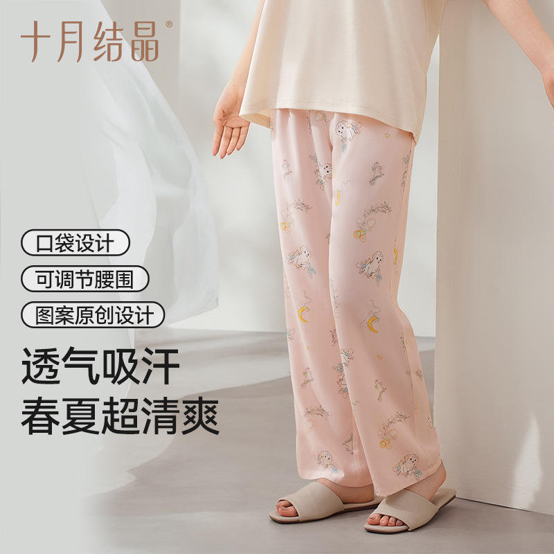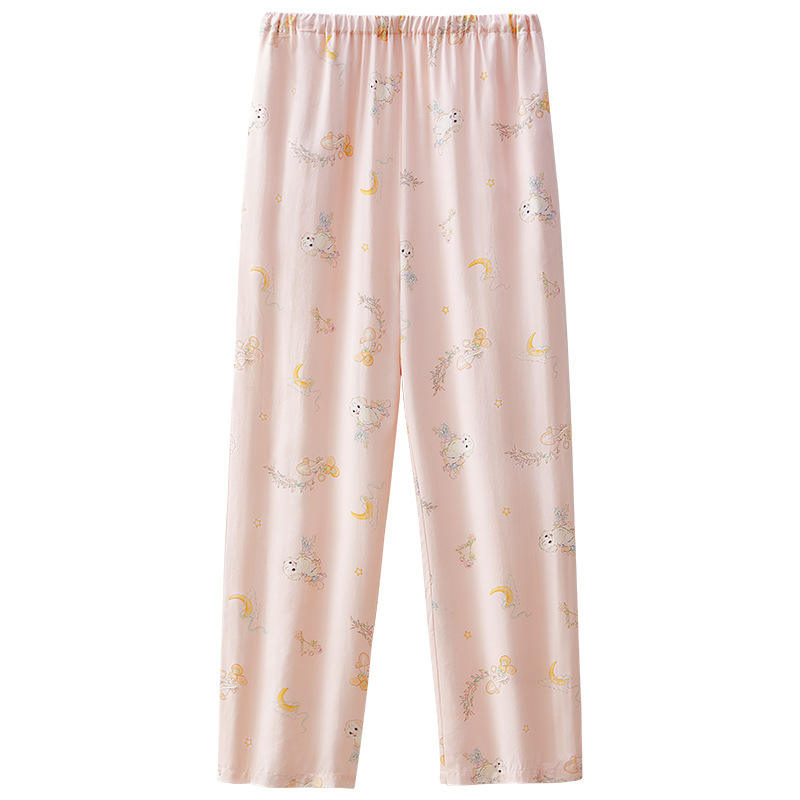 Pantalon de maternité long en pyjama respirant et doux pour l'automne, imprimé étoiles, lune, chiens et canards roses, tailles M, L, XL