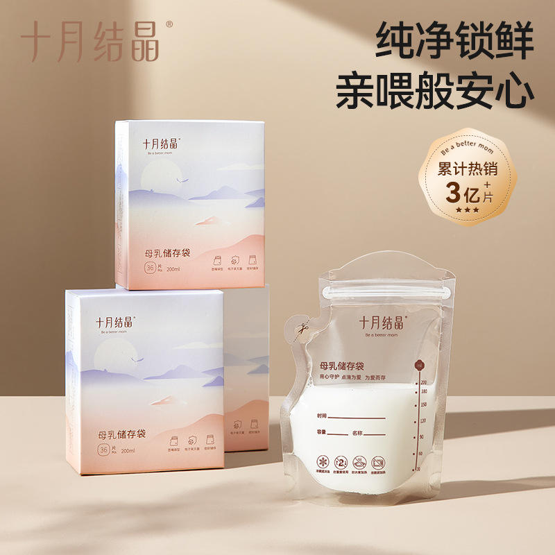 Sac de conservation du lait maternel October Crystallization 200ml, scellé, pour une conservation fraîche au réfrigérateur, pour la maternité