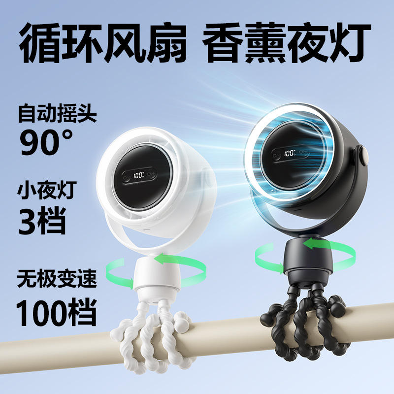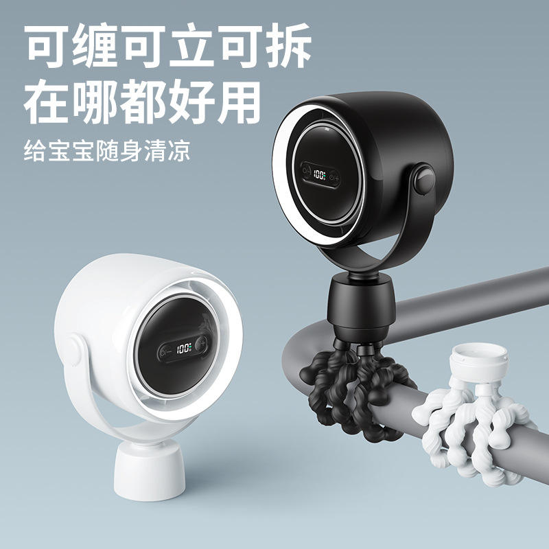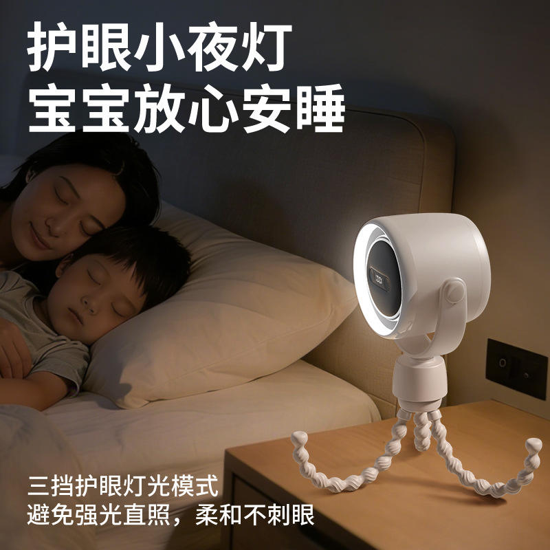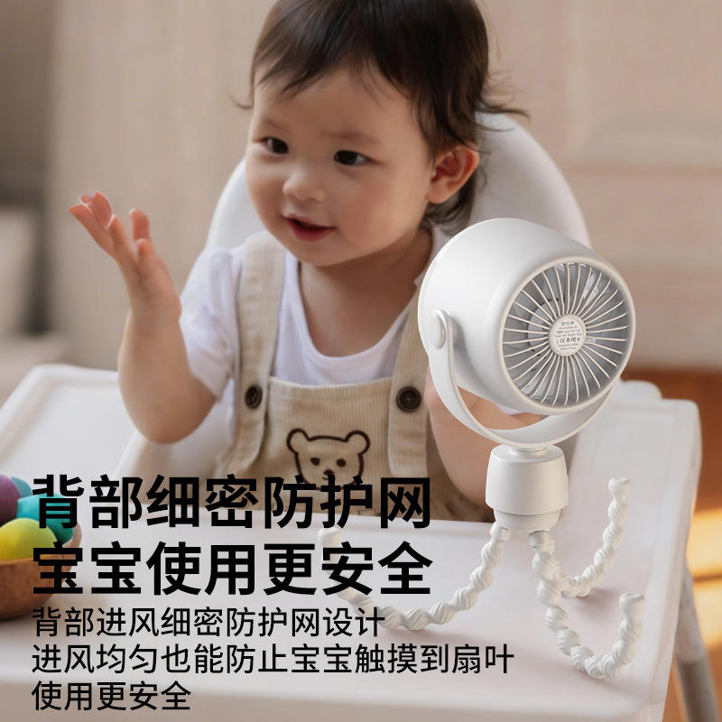 Ventilateur Octopus oscillant automatiquement avec lumière LED USB multicolore, mini ventilateur pour poussette de bébé