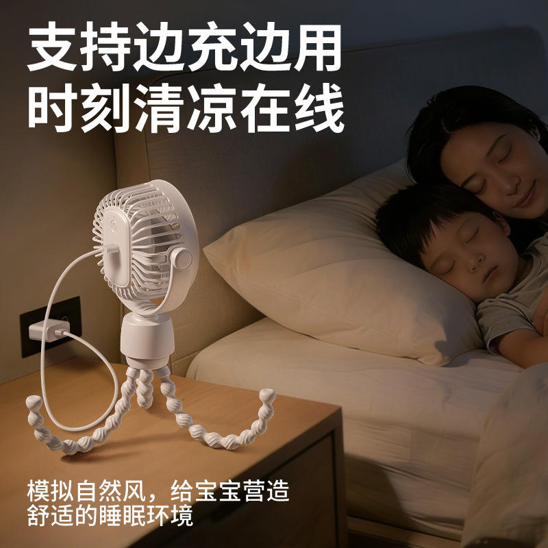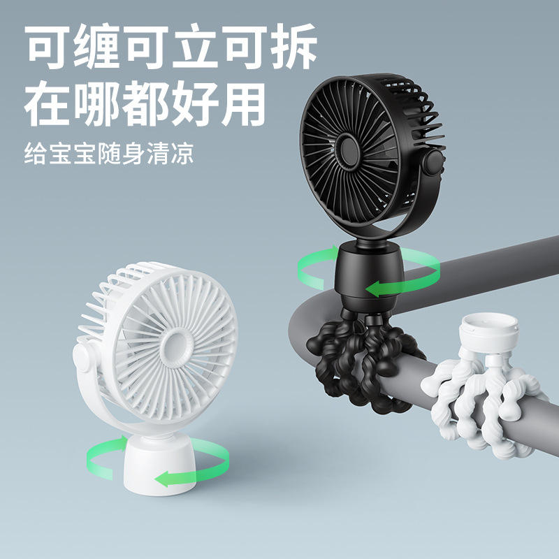 Mini ventilateur Octopus avec fonction oscillante, alimenté par USB, ventilateur portable pour poussette de bébé, blanc