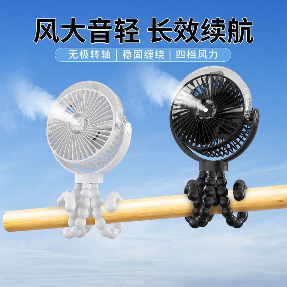 Ventilateur pulvérisateur Octopus 25 pouces, rechargeable par USB, silencieux, longue autonomie, portable, pour bébé et usage domestique